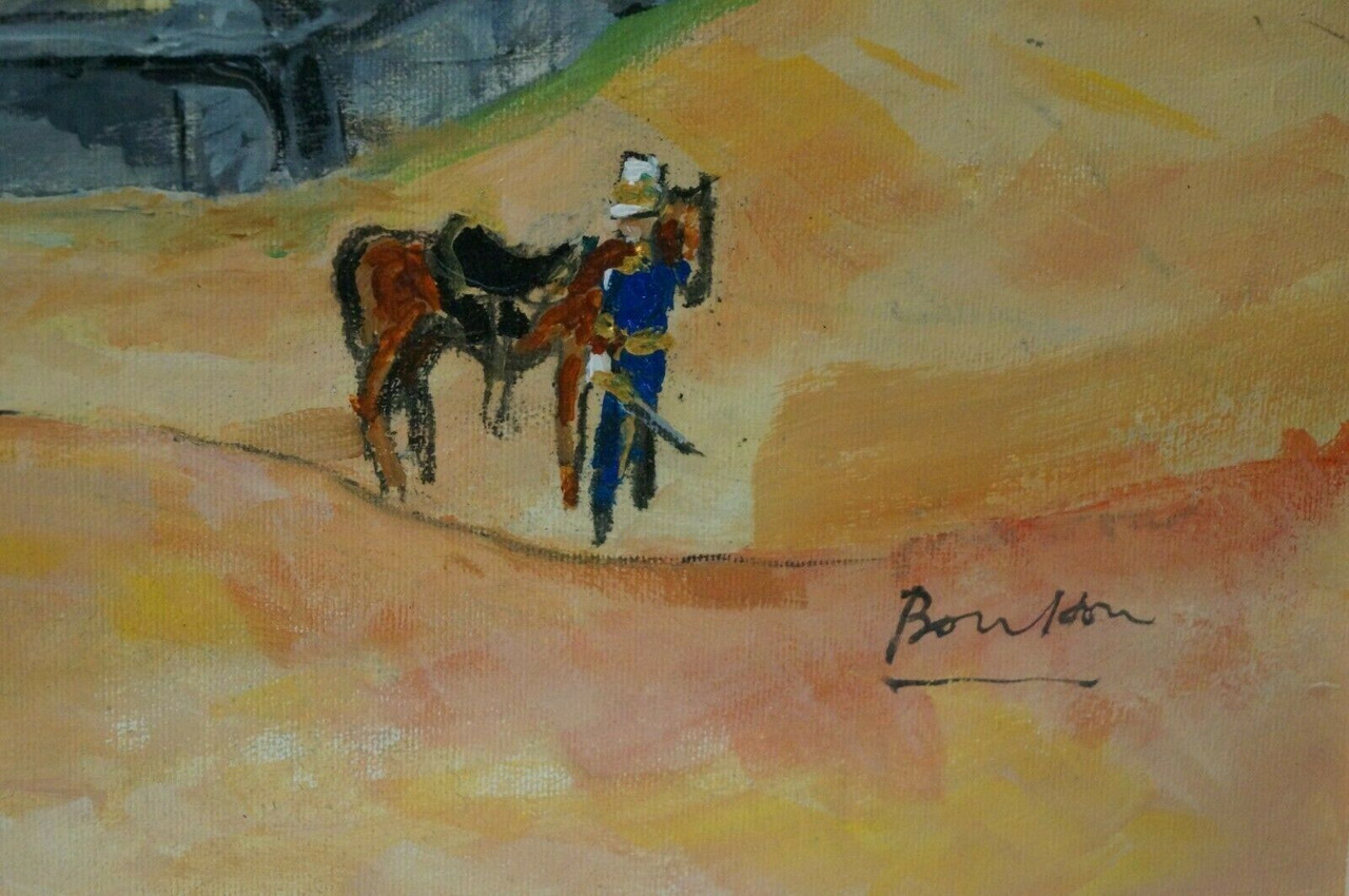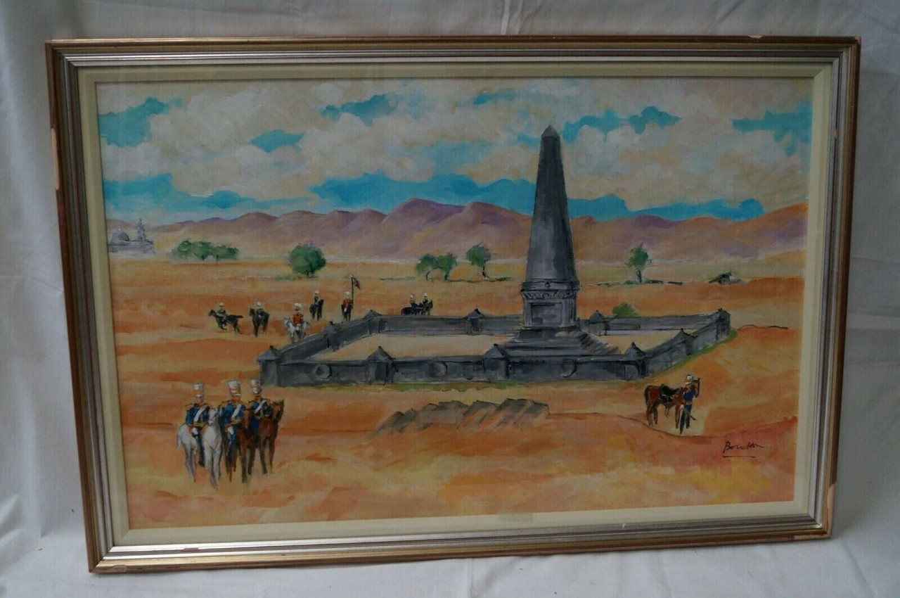 A very good Original Vintage French Hussars Cavalry Obelisk War Memorial Framed Painting, well executed painting of an unknown Memorial, Signed by artist Boulton, in very good condition, framed and ready to hang. 31.5 x 20.5 inches