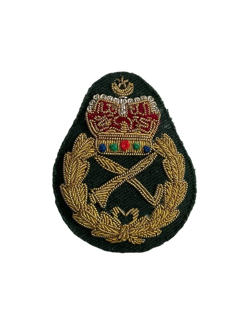The ‘Pakistan Army Generals Bullion Wire Cap Badge’ is a distinct symbol of patriotism, authority, and respect. Intricately crafted from high-quality bullion wire, this badge is traditionally worn by generals in the Pakistan Army. The badge features an exquisite design that is a testament to the meticulous artistry involved in its creation. It graces the military caps, adding an authoritative edge to the attire. The bullion wire used gives the badge a polished and sophisticated appearance, ensuring its visibility and prestige. This cap badge is not just an accessory but a token of honor, showcasing the high rank and position of the wearer. The Pakistan Army Generals Bullion Wire Cap Badge serves as a proud emblem of the commitment, bravery, and leadership of the Pakistani military officers. It’s an item of importance and reverence, reflecting the valor of the Pakistan Army.