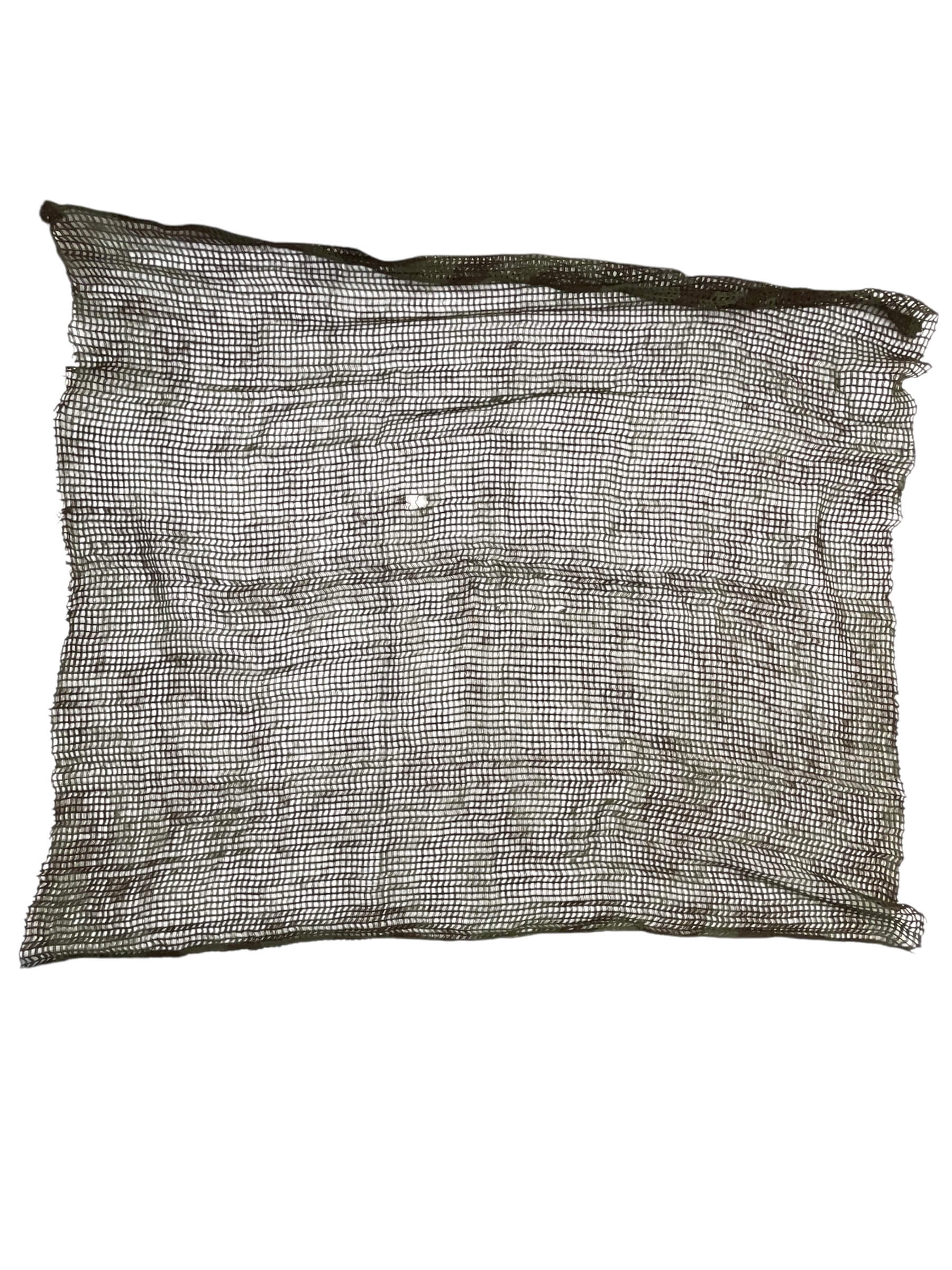 The Personal Camouflage Net measures approximately 40 inches by 38 inches and is designed for individual concealment in military and field settings. Constructed from durable, lightweight material, this net features a pattern and texture intended to blend with various natural environments, offering practical visual disruption. Commonly used by soldiers for personal cover, it can be draped over equipment, packs, or worn directly to reduce detection by observers and reconnaissance. The net’s compact size makes it suitable for carrying in a field pack or attaching to web gear. Historically, camouflage nets have been issued as standard military equipment for both training and operational deployments, providing an effective means of concealment against aerial or ground spotting. This item represents a typical example of individual camouflage from the mid-20th century onward, reflecting the evolution of fieldcraft and concealment practices in armed forces around the world.