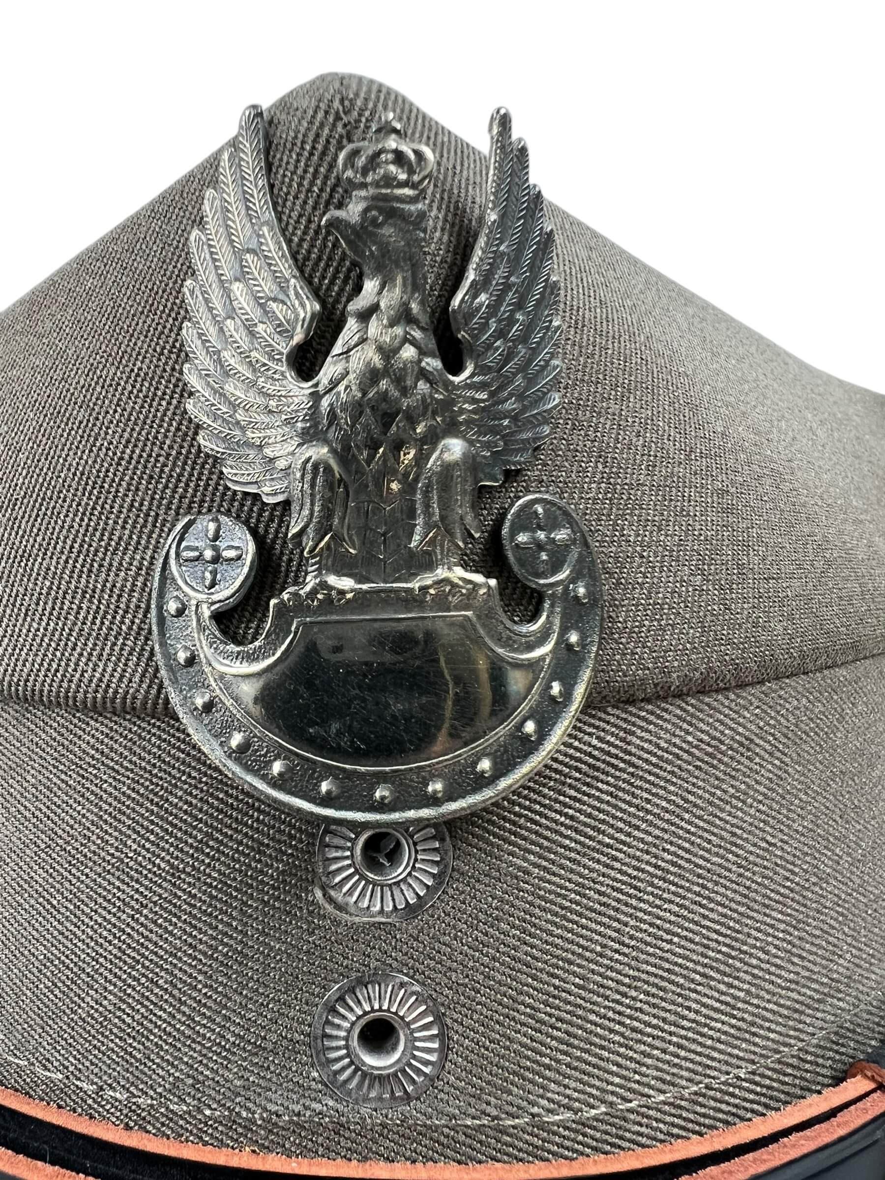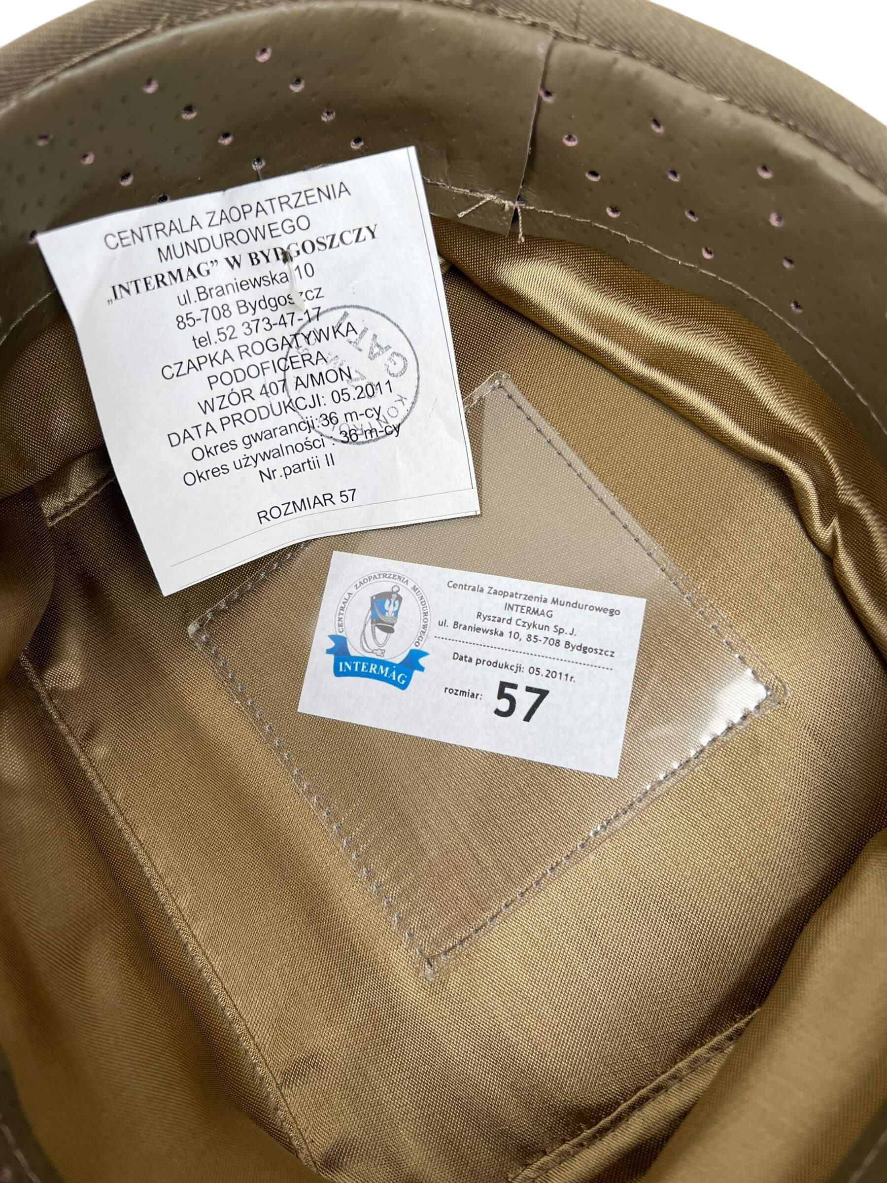 This Polish Army Peak Cap Hat With Badge Size 57 is a unique and authentic piece of military memorabilia. Made from high-quality materials, the cap is designed to be both durable and comfortable. It features a traditional peak design, offering protection from the sun and rain. The cap is predominantly in the official olive green color of the Polish military. Its most distinctive feature is the attached badge, which displays the emblem of the Polish Army, adding a touch of authenticity and patriotism. The cap is sized 57, fitting average adult head sizes, making it a perfect gift for military enthusiasts or collectors. This Polish Army Peak Cap Hat is not just a fashion statement, but also a piece of history that stands as a tribute to the bravery and service of Polish soldiers.