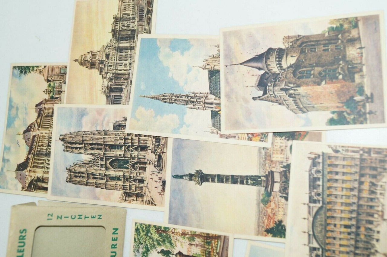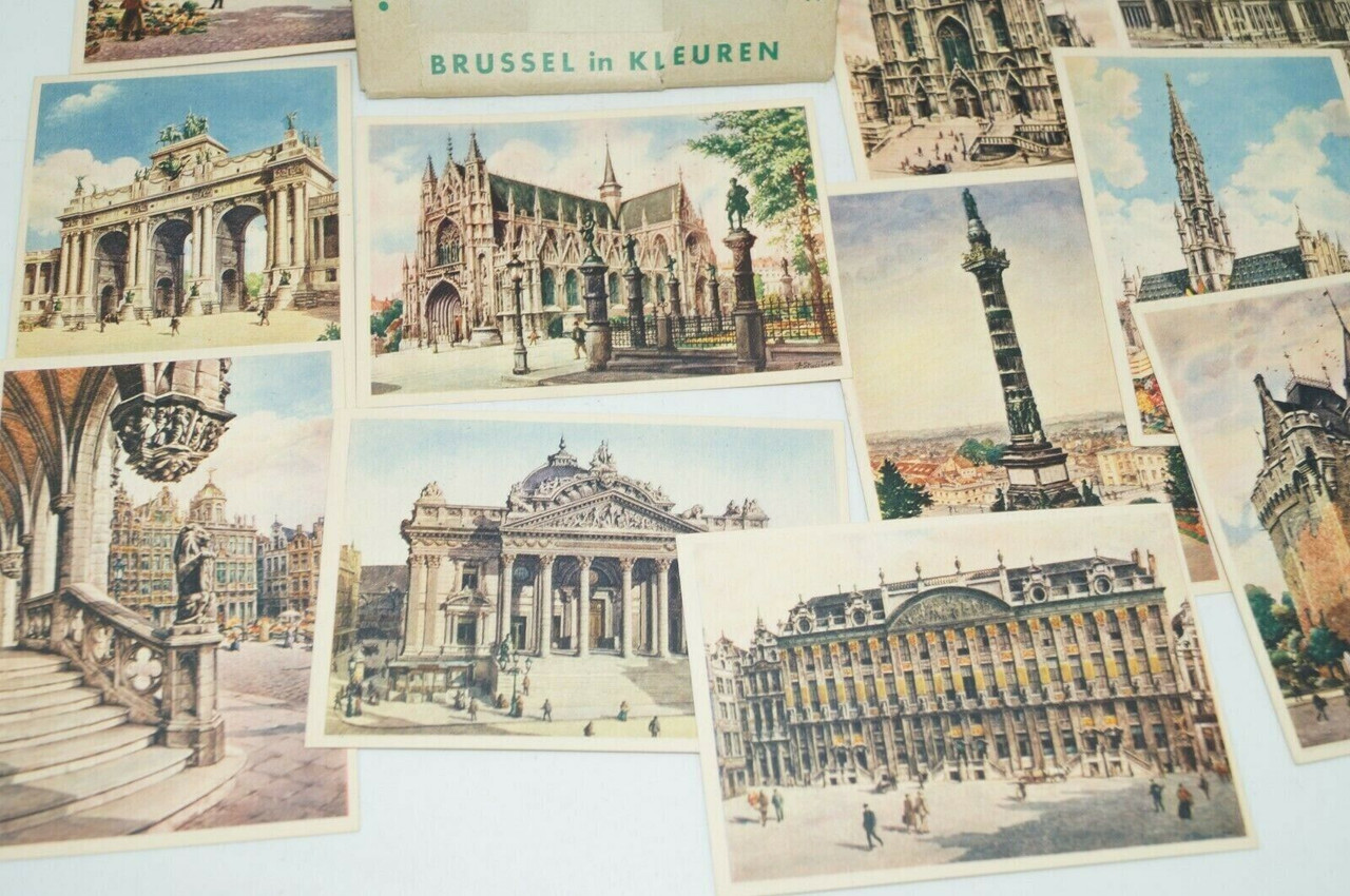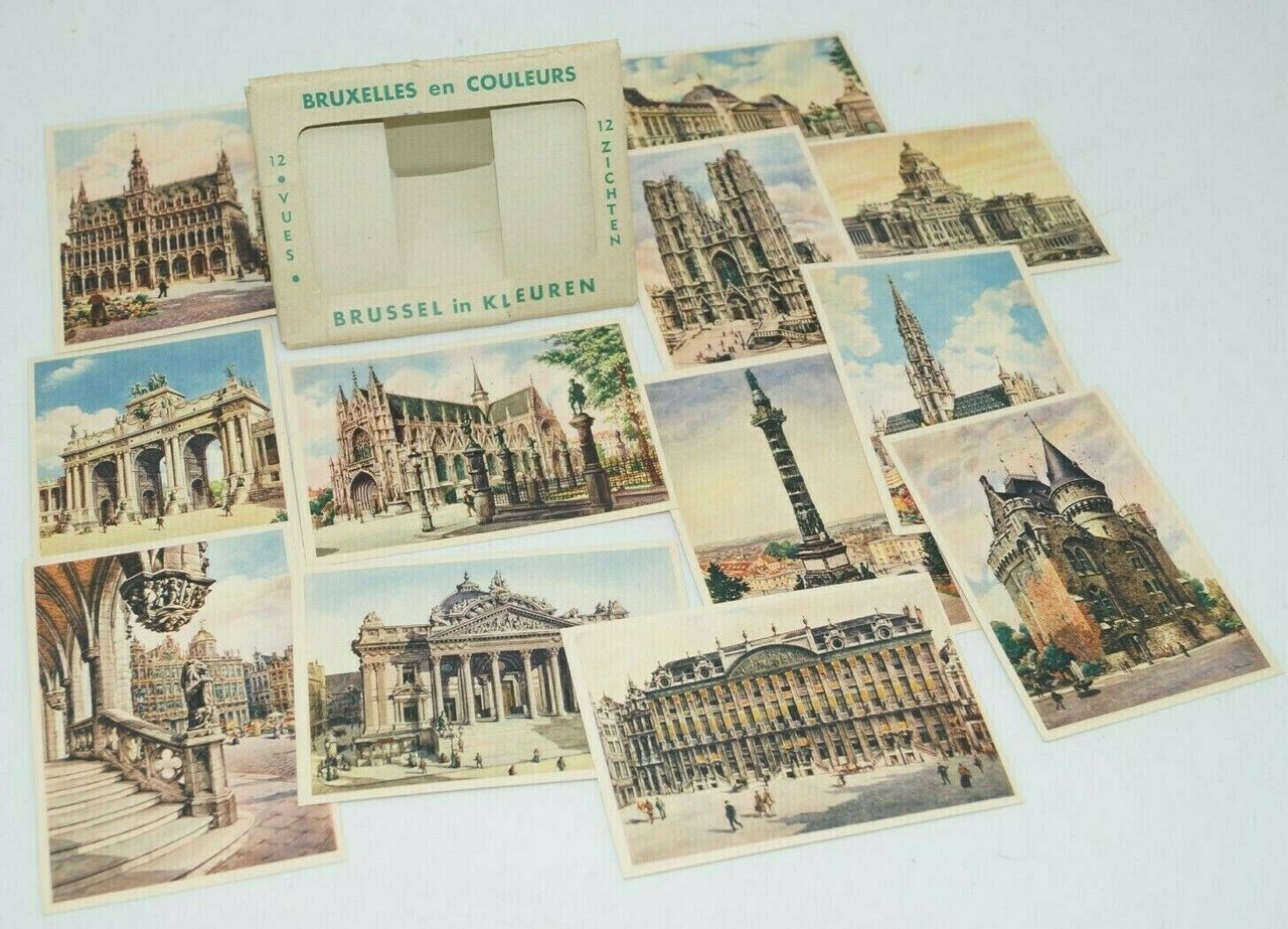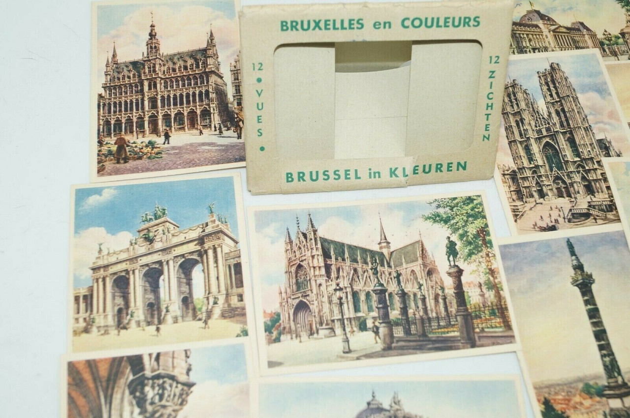 A good set of Post WW2 Era Brussels In Colour 12 x Postcards, nice images, no writing to the backs of any. small tear to front outer carton.