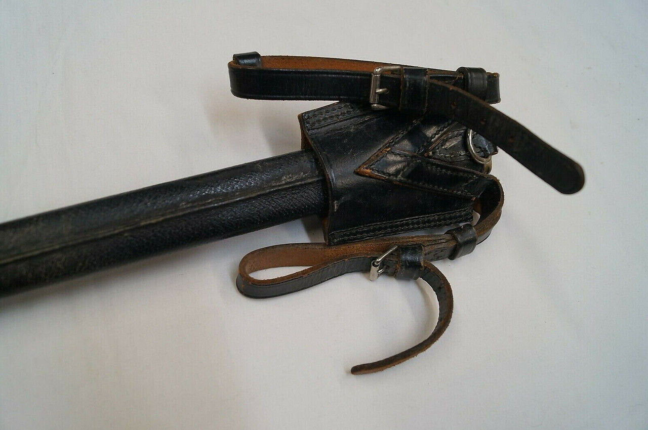 A very good used Pre WW1 British Canadian Pattern 1897 Sword Scabbard & Hanger, very good condition, leather covered, one strap torn but does not detract, overall a nice example.