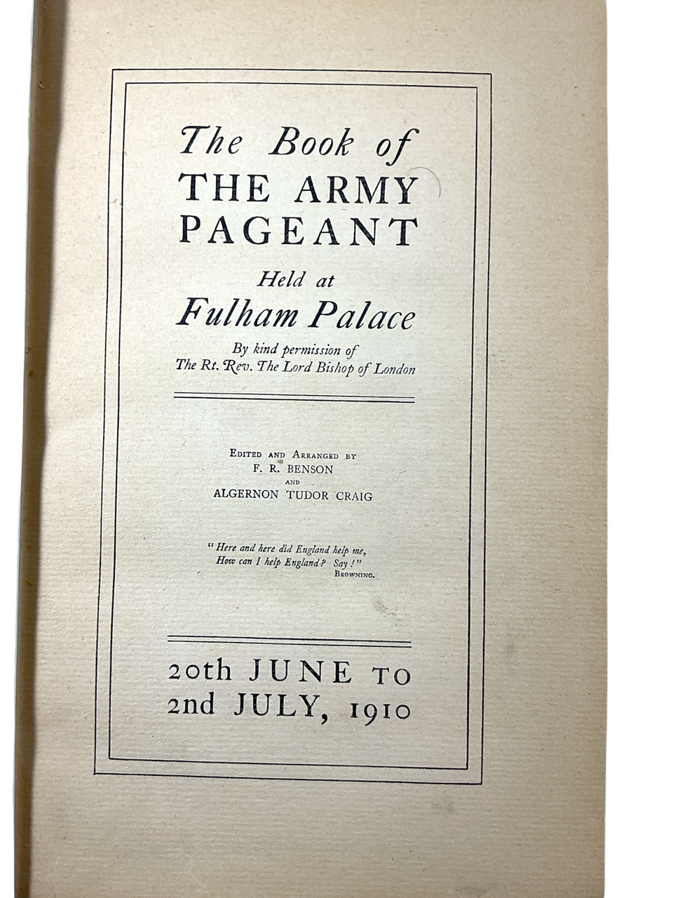 Pre WW1 British The Army Pageant Fulham Palace 1910 Hard Cover Reference Book