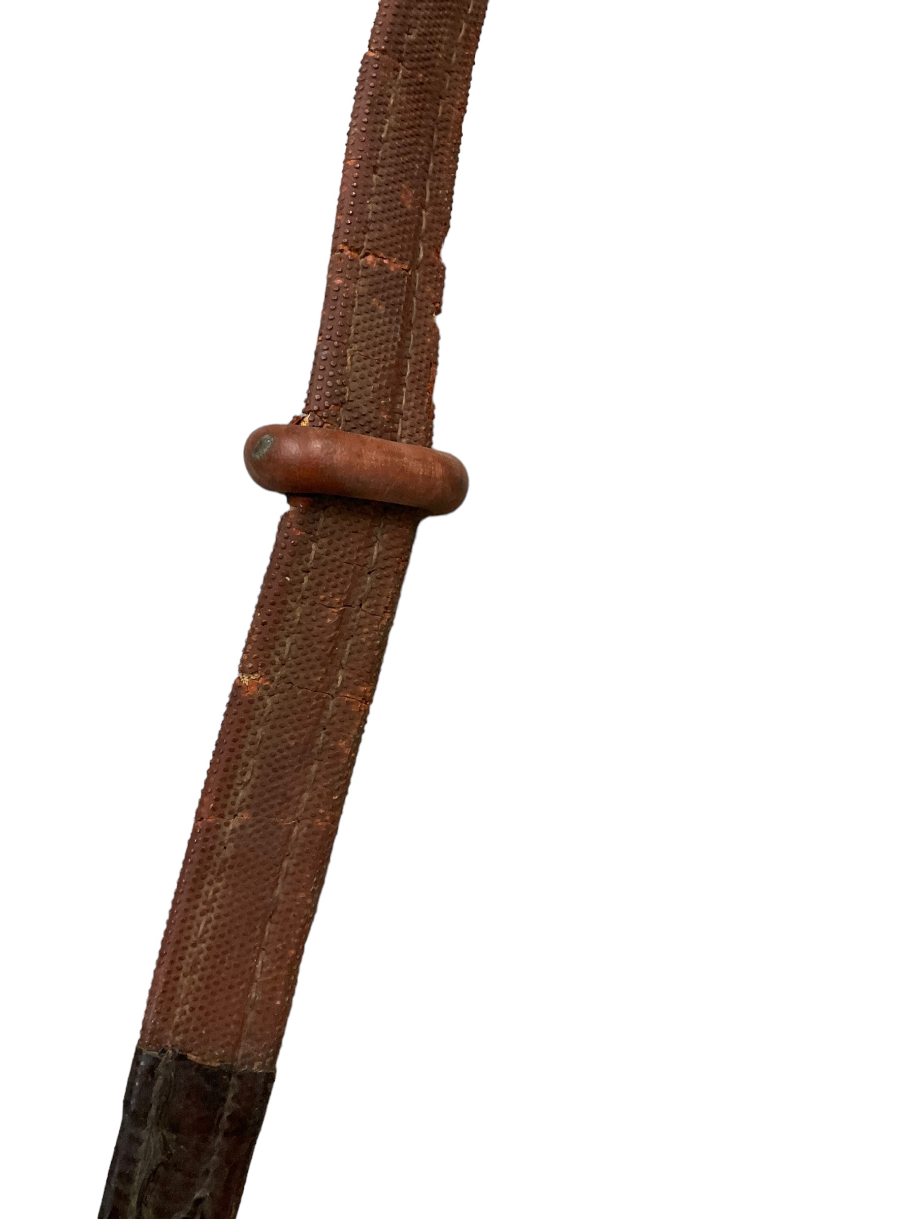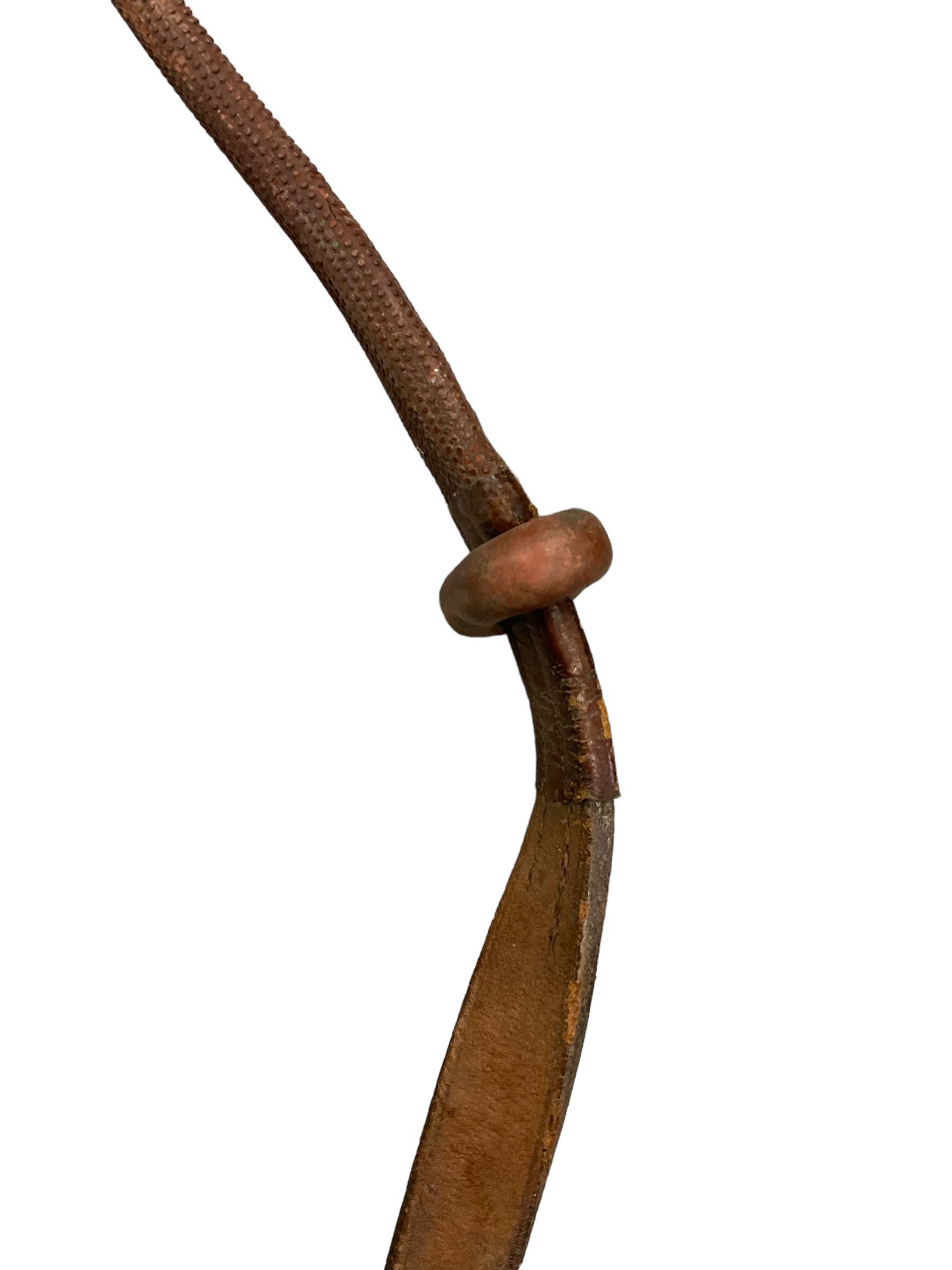 The “Pre WW1 Canadian CEF Horse Bridal Reins & Bit” is a fascinating piece of historical military equestrian equipment. Originating from the Canadian Expeditionary Force which participated in World War I, these items reflect the craftsmanship and utilitarian design typical of the pre-war era. The bridle, reins, and bit would have played a critical role in the daily lives of mounted soldiers, ensuring control and communication with their horses during training and on the battlefield. The leather components are typically well-patinaed, offering a glimpse into their extensive use and history. The metal bit bears signs of age and use, indicating the harsh conditions of military service. Collectors and historians will find these artifacts invaluable for understanding the cavalry units of the CEF and their operational requirements. This set is not only a collectible but also a testament to the role of cavalry in early 20th-century military tactics.