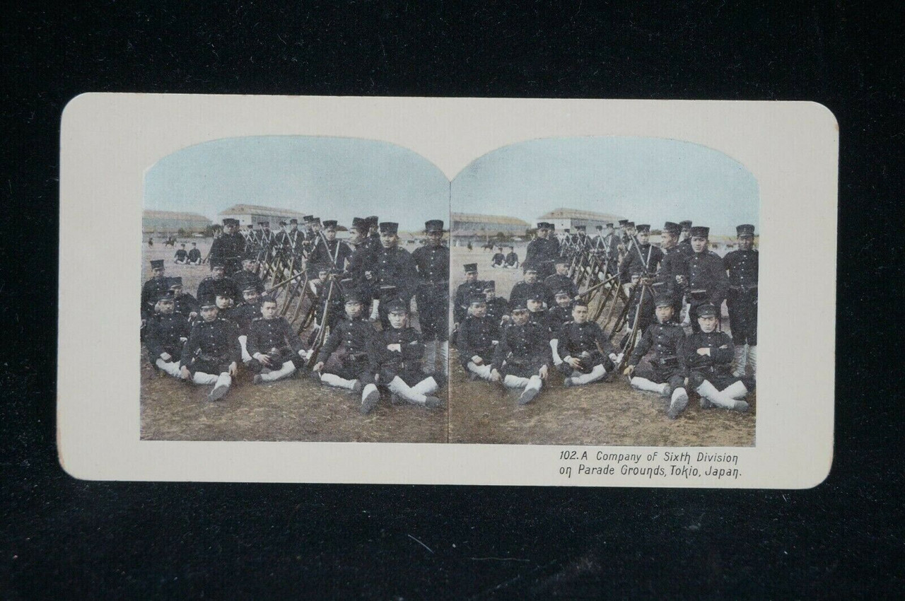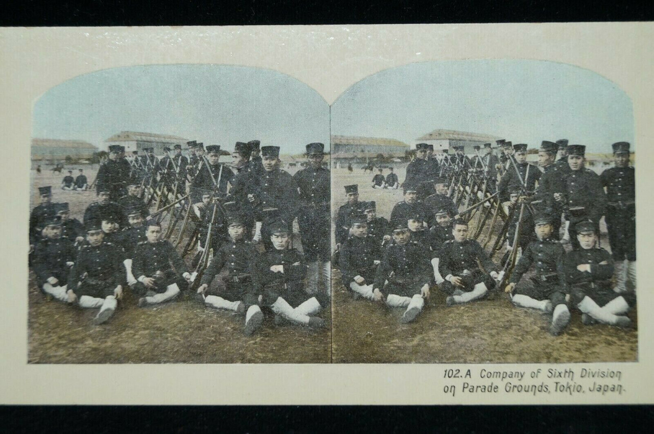 Pre WW1 Imperial Japanese A Company of Sixth Division Tokyo Japan Stereoscope