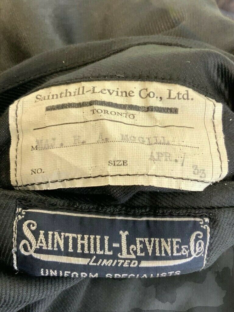 This distinguished Pre-WW2 Canadian Officers Patrol Tunic Jacket belonged to Major R.A. McGill, symbolizing significant historical and military heritage. Crafted with meticulous attention to detail, the tunic exhibits the exceptional quality and style of early 20th-century military attire. The jacket features finely tailored wool fabric, complete with classic brass buttons adorned with the emblem of the Canadian forces. The interior is lined, ensuring both comfort and durability. Epaulettes bearing Major McGill’s rank, along with other insignia, confirm its authenticity and storied past. This tunic is not only a garment but a piece of history, reflecting the dedication and service of those who wore it in the years leading up to World War II. Ideal for collectors, historians, or military enthusiasts, this jacket offers a tangible connection to Canada’s military legacy and a testament to Major R.A. McGill’s service and commitment.