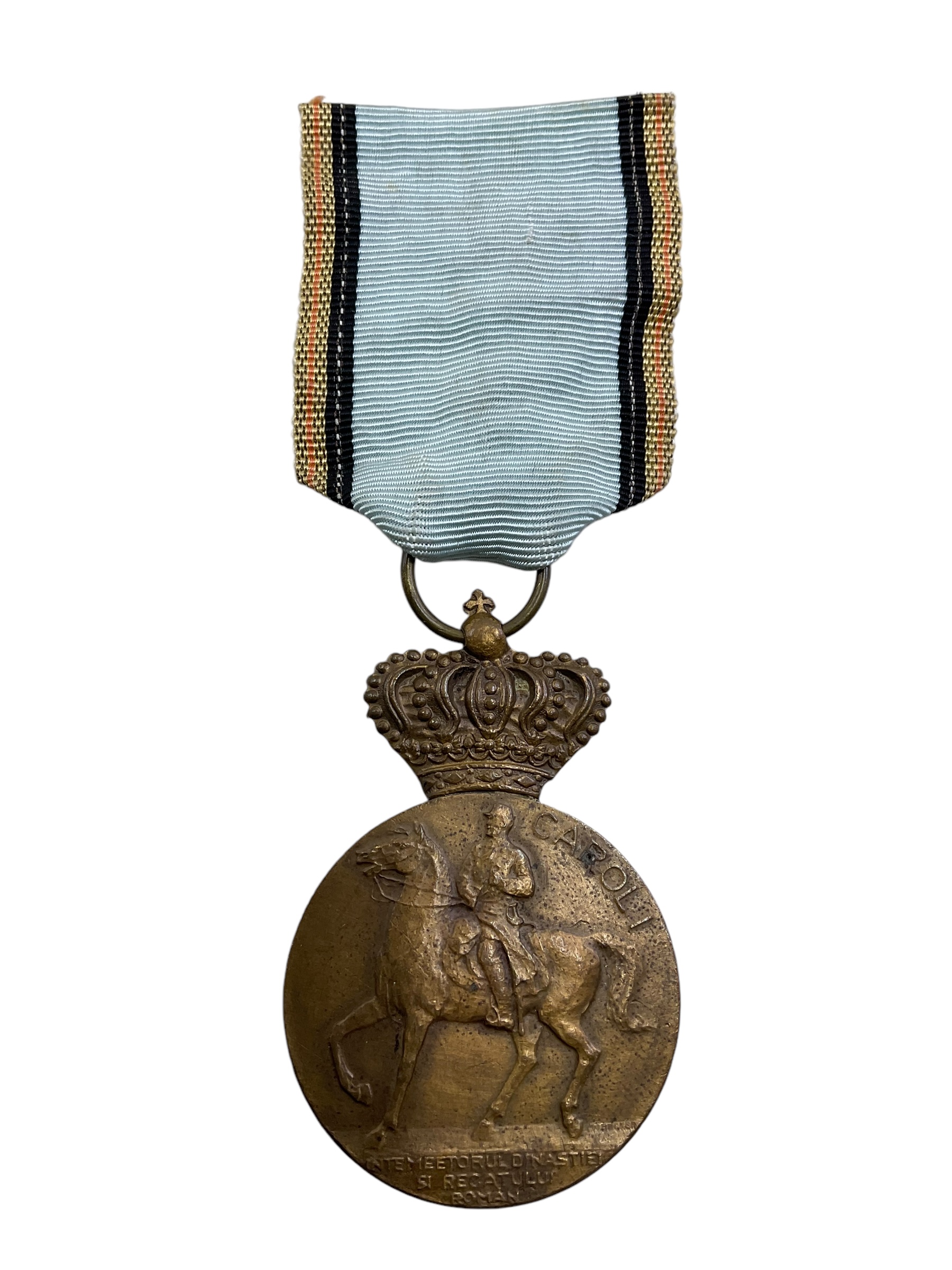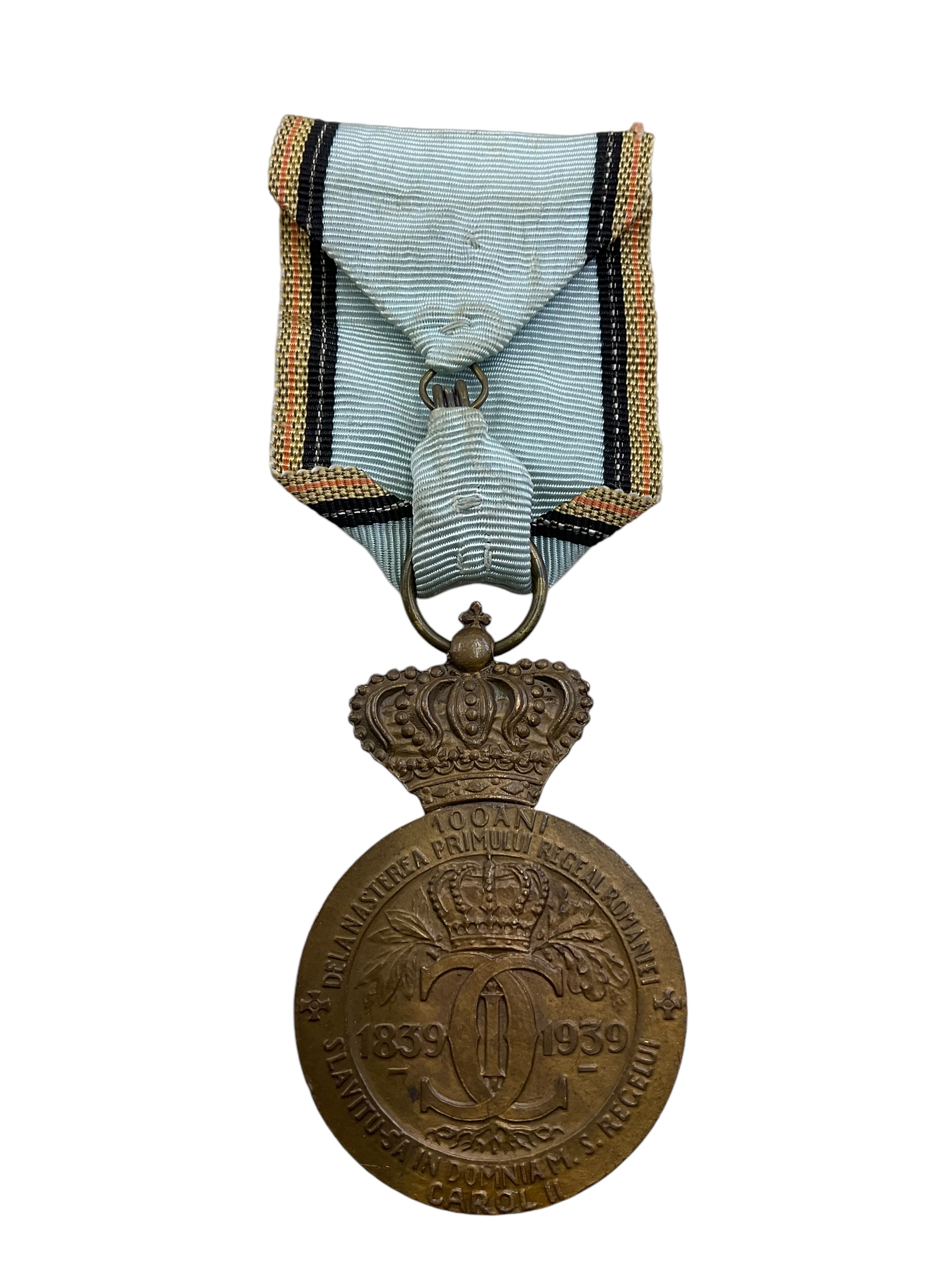 This collectible item is a full-sized Romanian King Carol 1st Medal dating from 1839-1939, celebrating a century since the birth of the first king of Romania. The medal showcases intricate detailing, featuring the embossed profile of King Carol 1st on the obverse, symbolizing his significant reign in Romanian history. The reverse typically illustrates important national symbols or significant dates. The piece is a testament to the rich Romanian cultural heritage and the country’s monarchical past. Created from high-quality material, this medal has been preserved in excellent condition, making it a valuable addition to any historical memorabilia collection. Its historical significance and craftsmanship make it a must-have for avid collectors and history enthusiasts alike.
