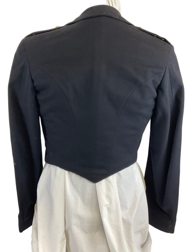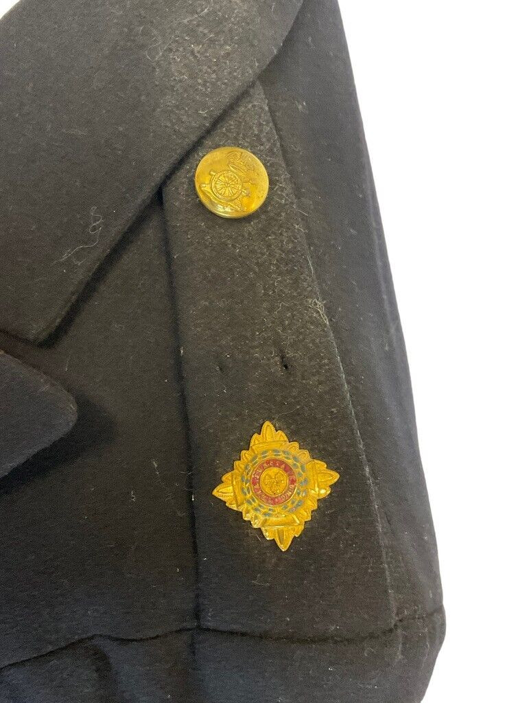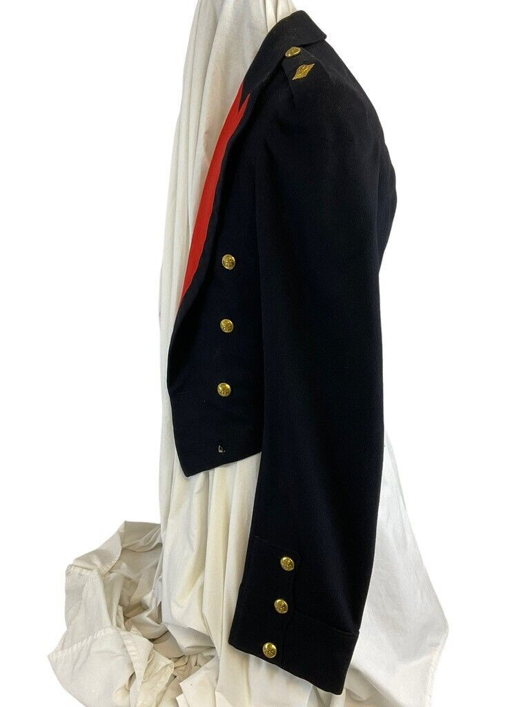 The Royal Canadian Artillery Lieutenant Named Officers Mess Dress Jacket is a distinguished piece of military attire, exemplifying the storied tradition and prestige of Canada’s armed forces. Crafted with meticulous attention to detail, this mess dress jacket is designed for formal social events and ceremonial occasions. It features the classic navy blue and gold trim that signifies the esteemed rank of a Lieutenant within the Royal Canadian Artillery. The high-quality fabric and tailored fit ensure both comfort and a commanding presence. Personalization with the officer’s name makes this piece uniquely significant, adding a layer of historical and sentimental value. This jacket not only represents military excellence but also serves as a poignant memento of service and dedication. It’s a striking symbol of professionalism and heritage, embodying the honor and discipline of the Royal Canadian Artillery.