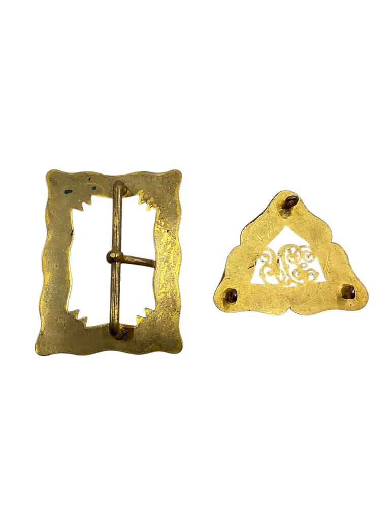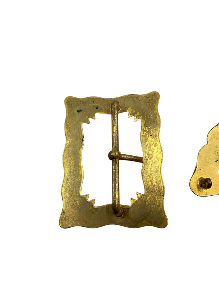The ‘Royal Canadian Engineers Officers Cross Belt Parts’ are integral components of the traditional uniform worn by officers in the Royal Canadian Engineers. These parts are typically crafted from high-grade metals, often including brass or silver, and are meticulously designed to represent the prestige and honour of the Royal Canadian Engineers. The cross belt, also known as a shoulder belt, is a significant part of the military attire, worn across the body from shoulder to hip. The parts for this belt include decorative pieces like badges, buckles, chains, and fasteners, each featuring intricate detailing and symbols that reflect the rich history and heritage of the Canadian military. These cross belt parts are not merely decorative, but also functional, helping to secure the belt and other accessories in place. They are a symbol of authority, discipline, and the distinguished legacy of the Royal Canadian Engineers.