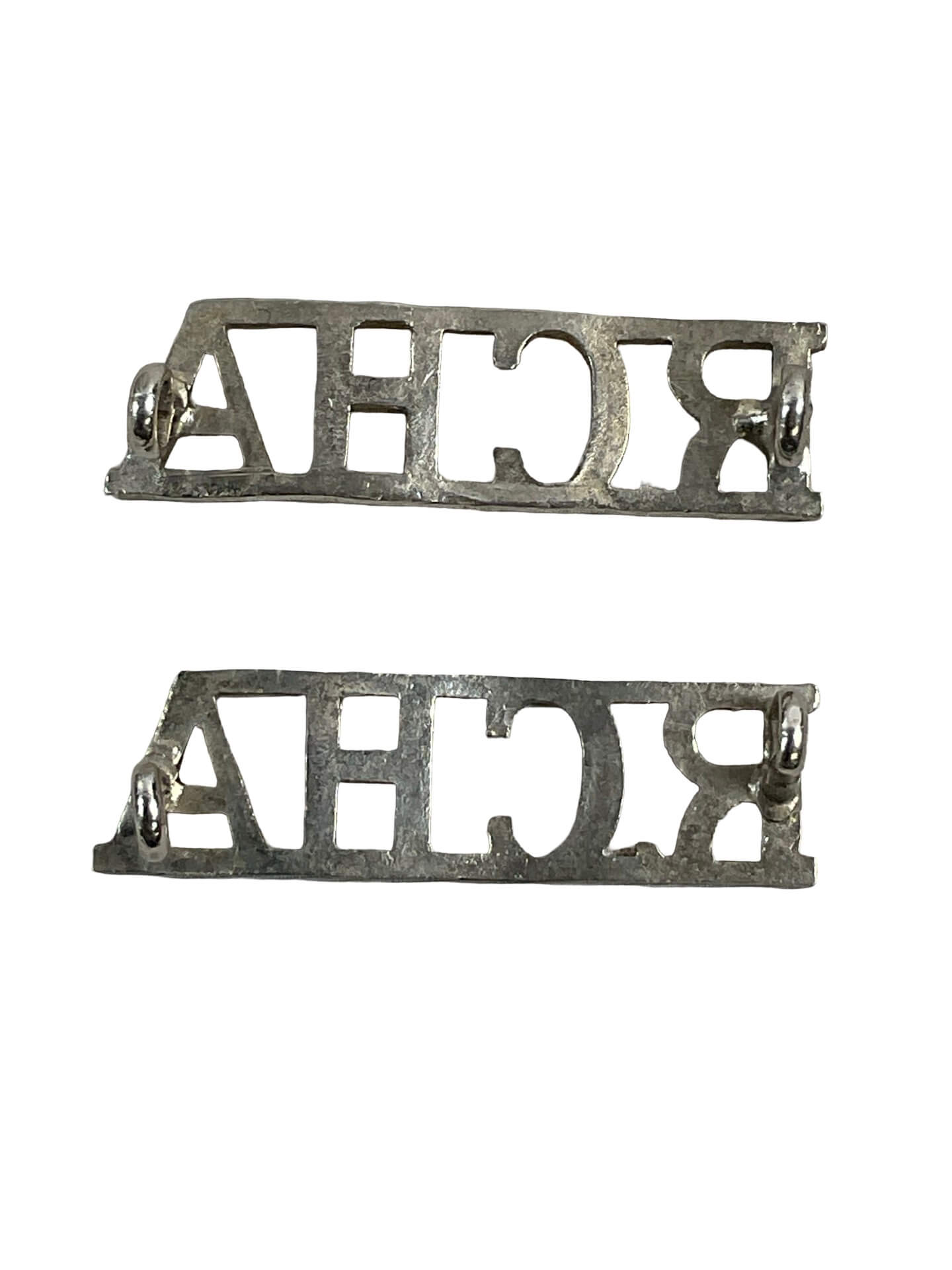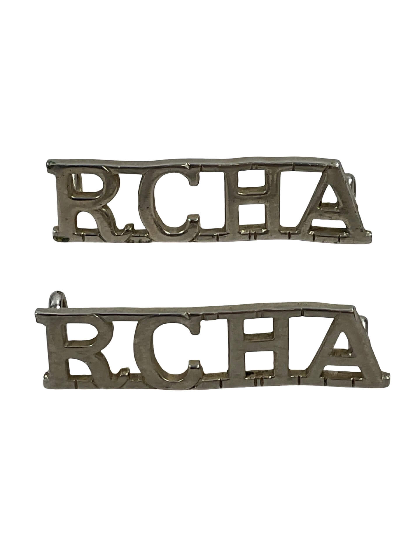 The Royal Canadian Horse Artillery (RCHA) Shoulder Titles Insignia Pair is a set of metal badges historically worn on the upper uniform sleeves of RCHA personnel. Each insignia typically features the detailed initials “RCHA,” representing the regiment’s name. These shoulder titles were used to identify members of the Royal Canadian Horse Artillery, a key regular force artillery unit within the Canadian Army. Introduced in the early 20th century, such insignia followed standardized military practices for distinguishing regimental affiliation and facilitating unit recognition. The pair format ensures matching insignia for both shoulders as per dress regulations. Depending on the period, these badges were manufactured from brass or other metals, often with a lug mounting system for secure attachment to the uniform. The RCHA has a longstanding history of service dating back to its formation in 1871 and has played significant roles in both world wars and modern Canadian military operations.
