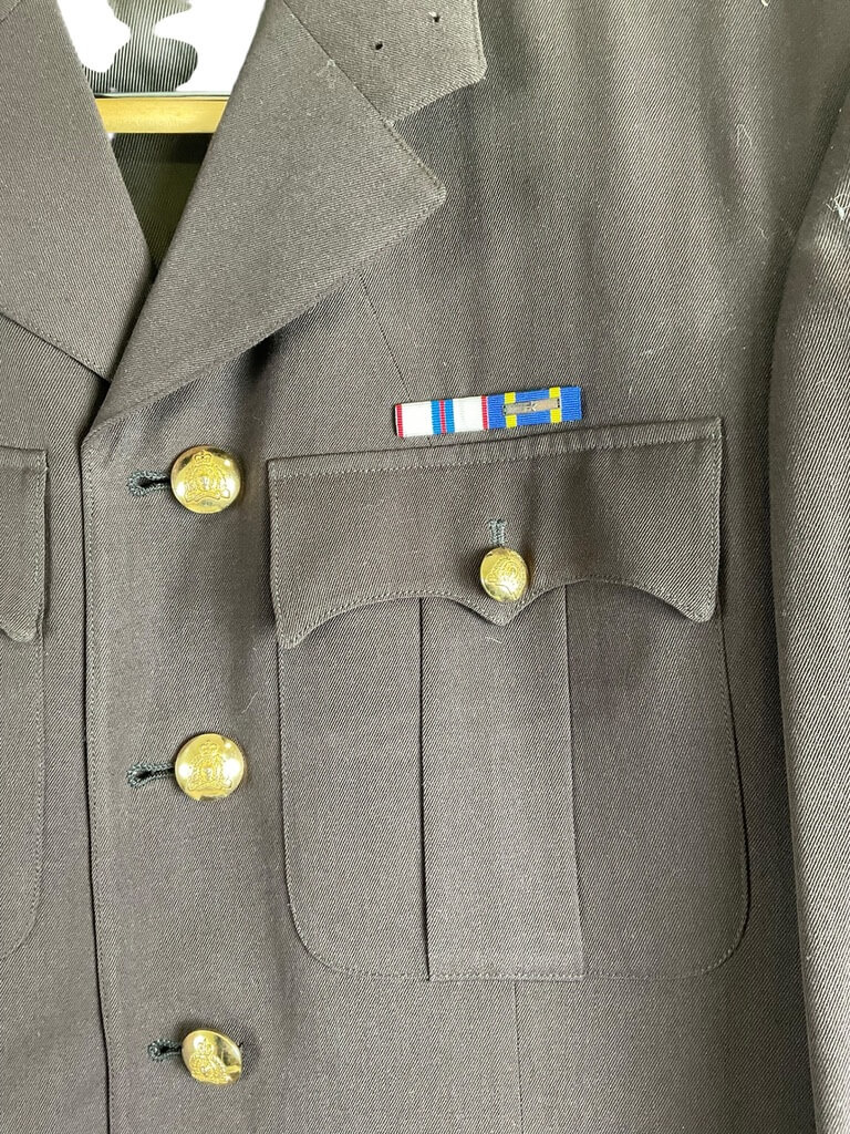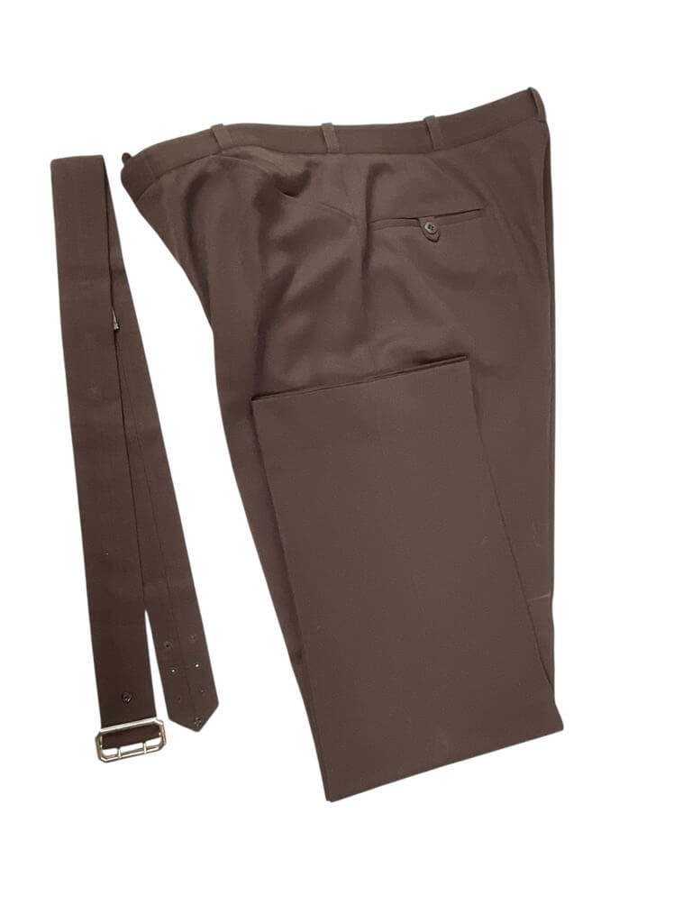 This Royal Canadian Mounted Police (RCMP) Brown Patrol Jacket and Trousers set is a genuine uniform piece typically used by Canada’s federal law enforcement. The jacket, a size 44R, is impeccably tailored in a rich brown hue, reflecting the iconic image of the RCMP. It features a zip-front, multiple pockets for functionality, and the emblematic patches on the shoulders. The matching trousers continue the theme with their perfect fit and durable material, suitable for the rigorous demands of patrol duties. Both pieces are crafted to withstand varying weather conditions, ensuring comfort and durability. This RCMP uniform set is not just functional but also carries the weight of Canadian heritage and law enforcement prestige, making it a unique collectible. It’s an ideal piece for enthusiasts of historical memorabilia or for those with a special interest in the RCMP.
