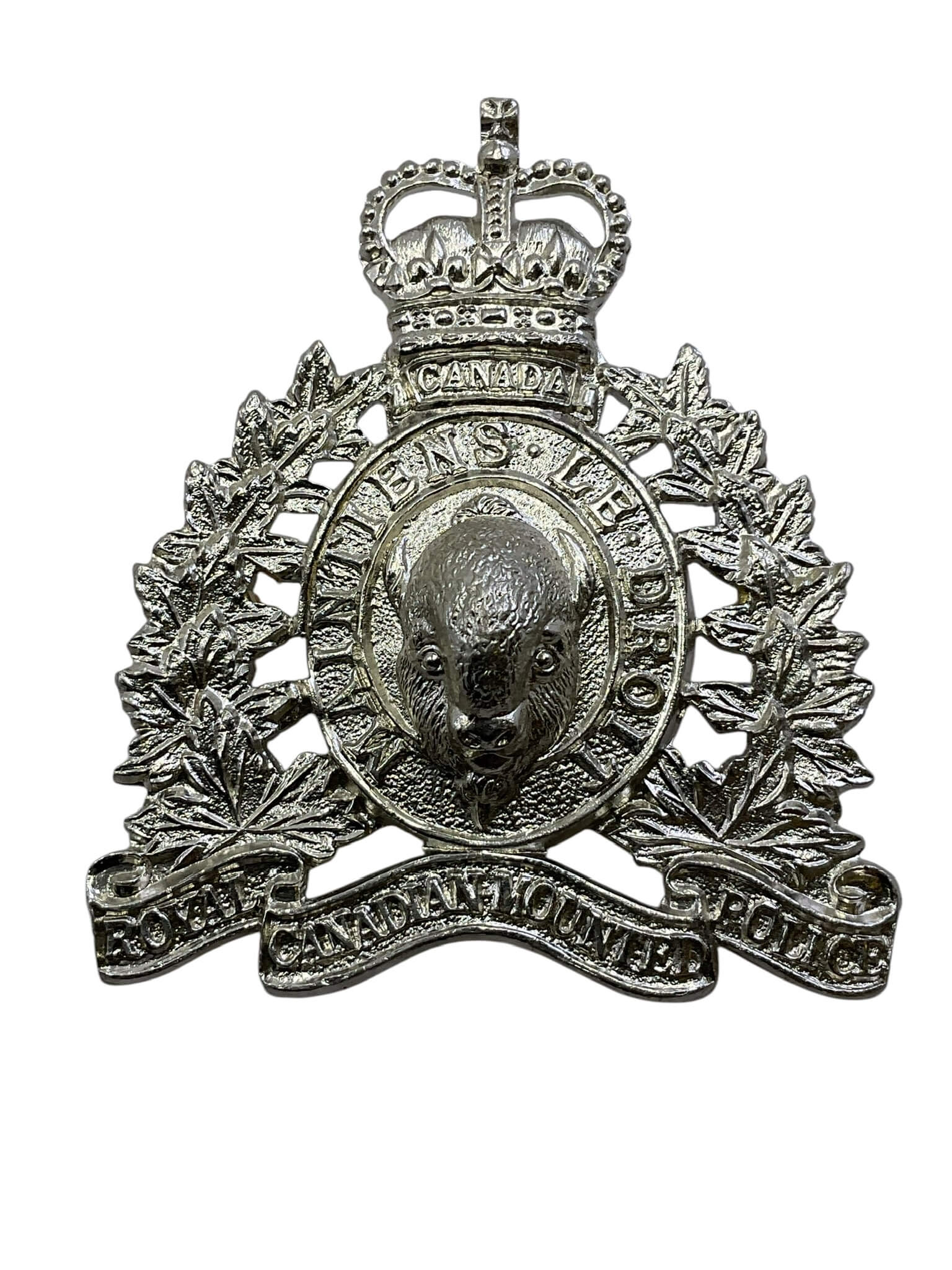 The Royal Canadian Mounted Police RCMP Cap Badge 1973 Gaunt ONLY 22 SETS MADE is an emblem of national pride and history. This badge, made from metal, resists tarnishing and maintains its lustrous shine over time, reflecting the enduring spirit of the RCMP. It features the iconic RCMP crest with a bison’s head, a crown, and a scroll bearing the force’s motto, “Maintiens le Droit” – French for “Uphold the Right”. The badge is typically worn on the peaked caps of uniformed officers, adding a touch of regality and authority. This Canadian artifact, with its intricate detailing and symbolism, serves not just as an identifying insignia but as a symbol of the dedication and commitment of the RCMP towards maintaining peace and justice. Collectors and history enthusiasts alike would find the RCMP Cap Badge a valuable addition to their collections.