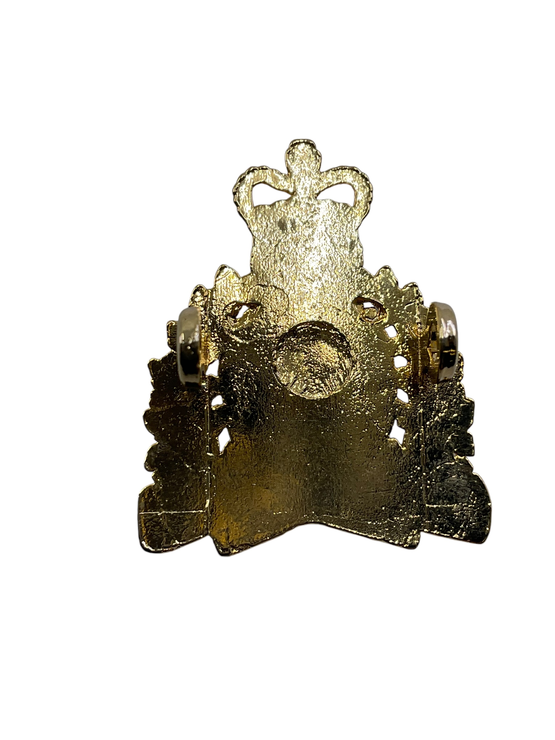 The ‘Royal Canadian Mounted Police RCMP Collar Insignia Single’ is a distinctive piece of regalia that signifies the authority and dignity of the renowned Canadian law enforcement agency. This single insignia is typically affixed to the collar of the uniform, making it clearly visible, symbolizing the wearer’s allegiance and duty to the force. The insignia features the RCMP’s iconic crest, meticulously crafted with attention to detail. It is often made from high-quality, durable material, designed to withstand the rigors of police work. Its polished finish adds to its professional appearance. This collar insignia doesn’t merely represent a decoration; it embodies the history, values, and the very essence of the RCMP. It is a proud declaration of one’s commitment and service to maintaining law and order in Canada.