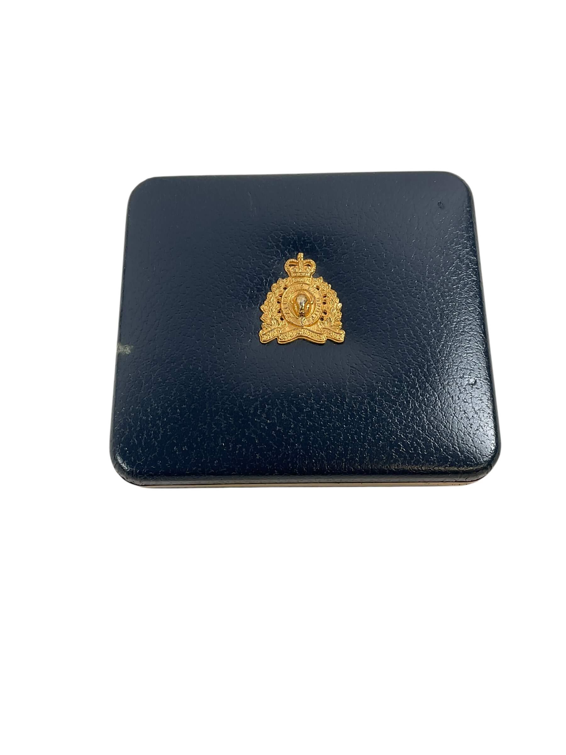The ‘Royal Canadian Mounted Police RCMP Long Service Full Size Medal In Case’ is a prestigious symbol of honor and dedication, typically awarded to members of the RCMP who have shown exceptional service and commitment. This full-sized medal is made with exquisite craftsmanship, featuring intricate details and symbols pertinent to the RCMP. The medal is housed safely in a custom-fit case, providing a perfect display solution while also preserving its condition. The case itself is equally impressive, designed with a rich finish that adds to the overall aesthetic value of the award. With this medal, one can truly appreciate the rich history and tradition of the RCMP. It serves as a remarkable memento for those who have served or simply as a collector’s item. This RCMP Long Service Medal encapsulates the spirit of dedication, bravery and commitment that the Royal Canadian Mounted Police represents.