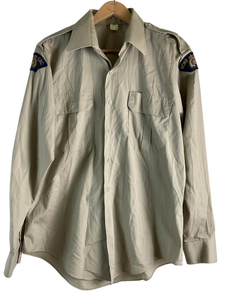The Royal Canadian Mounted Police (RCMP) long sleeve shirt, size 16 1/2, is a distinctive piece of apparel associated with Canada’s federal and national law enforcement body. This shirt, made of durable material, is designed to withstand frequent use. It is primarily characterized by its long sleeves, a standard characteristic for RCMP uniform shirts, providing extra protection in various weather conditions. The shirt features an official insignia, signifying its affiliation with the RCMP. Size 16 1/2 refers to the neck size, suggesting it’s designed for individuals with a larger build. It’s important to note that this shirt is designed to replicate the RCMP uniform, intended for costume use, collectors, or fans of RCMP memorabilia. It should not be used to impersonate a member of the RCMP, which is illegal. Authenticity should be verified before purchase if it’s for a collection. Always respect the significance and integrity of this uniform item.