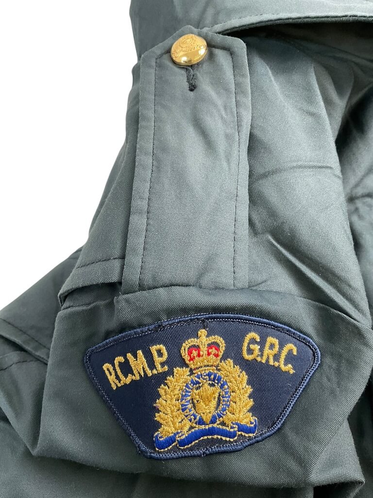 The Royal Canadian Mounted Police (RCMP) Men’s Patrol Jacket is a size 40 regular garment with a detachable liner. It mimics the official RCMP uniform with its distinct red serge colour. It’s structured for heavy-duty outdoor use, offering notable warmth and durability. This jacket does not symbolize active-duty status.