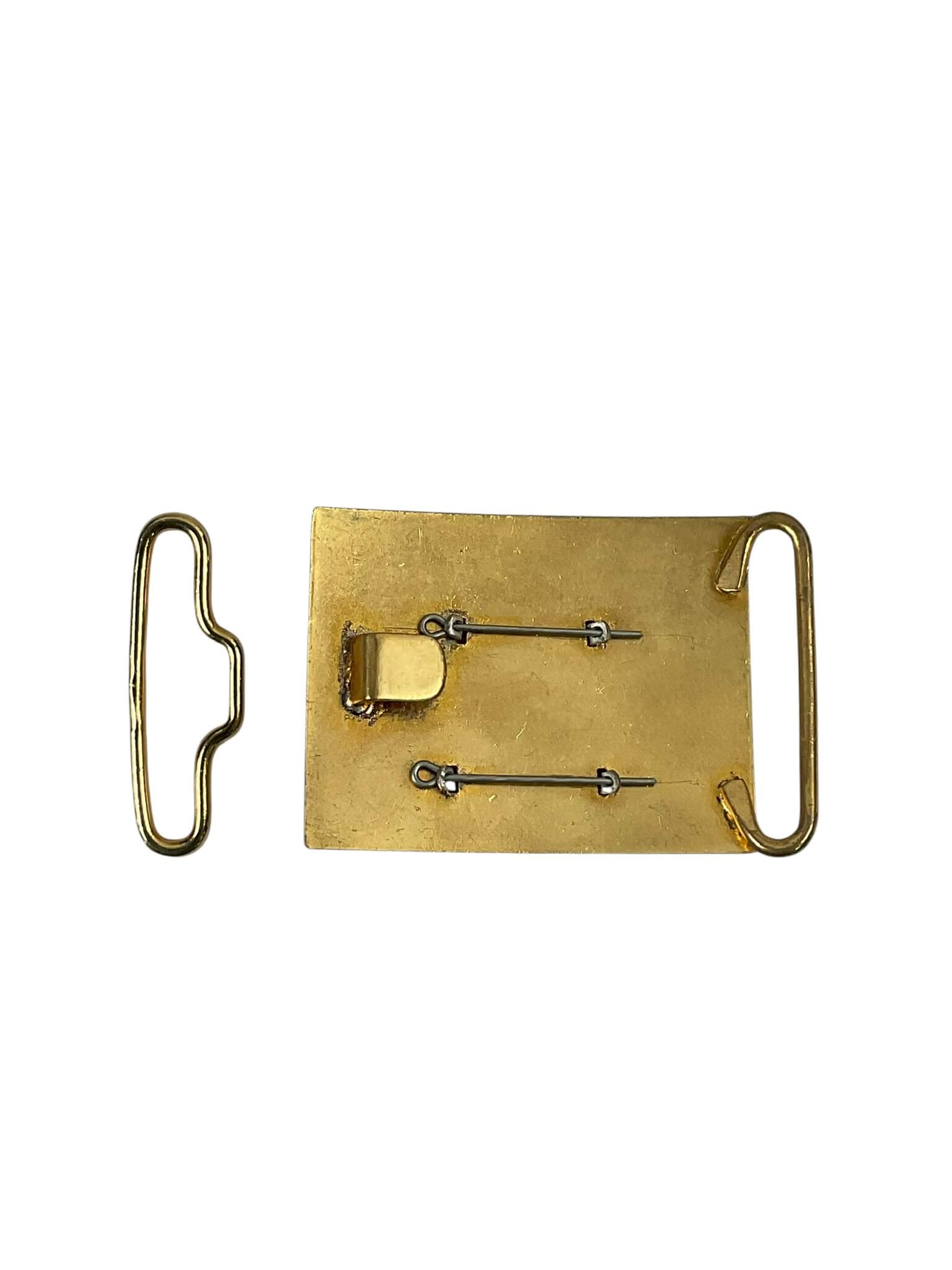 The Royal Canadian Mounted Police (RCMP) Officers Dress Belt Buckle is a ceremonial uniform accessory issued to members of Canada’s national police force. Typically crafted from metal alloys, these buckles display the RCMP crest, featuring a crowned buffalo head within a wreath, above a scroll inscribed with the force’s official title. The design reflects the traditions and heritage of the RCMP, an institution established in 1873. Officer-grade dress belt buckles differ from standard-issue buckles in their quality, detail, and intended use with formal dress uniforms. They are presented to officers for use during official ceremonies, parades, and other formal occasions. This item’s construction generally includes a sturdy frame, secure fastening mechanism, and finely rendered insignia. RCMP dress belt buckles represent both the authority and the ceremonial traditions of Canada’s law enforcement history, making them notable pieces for collectors of police and military memorabilia.