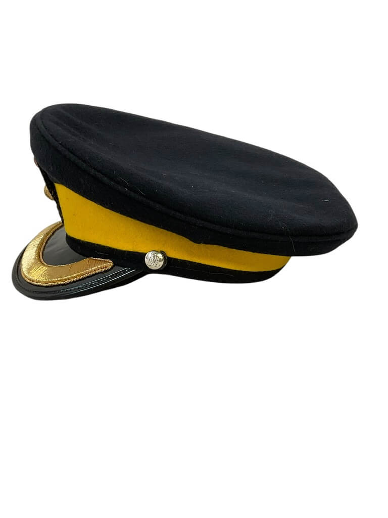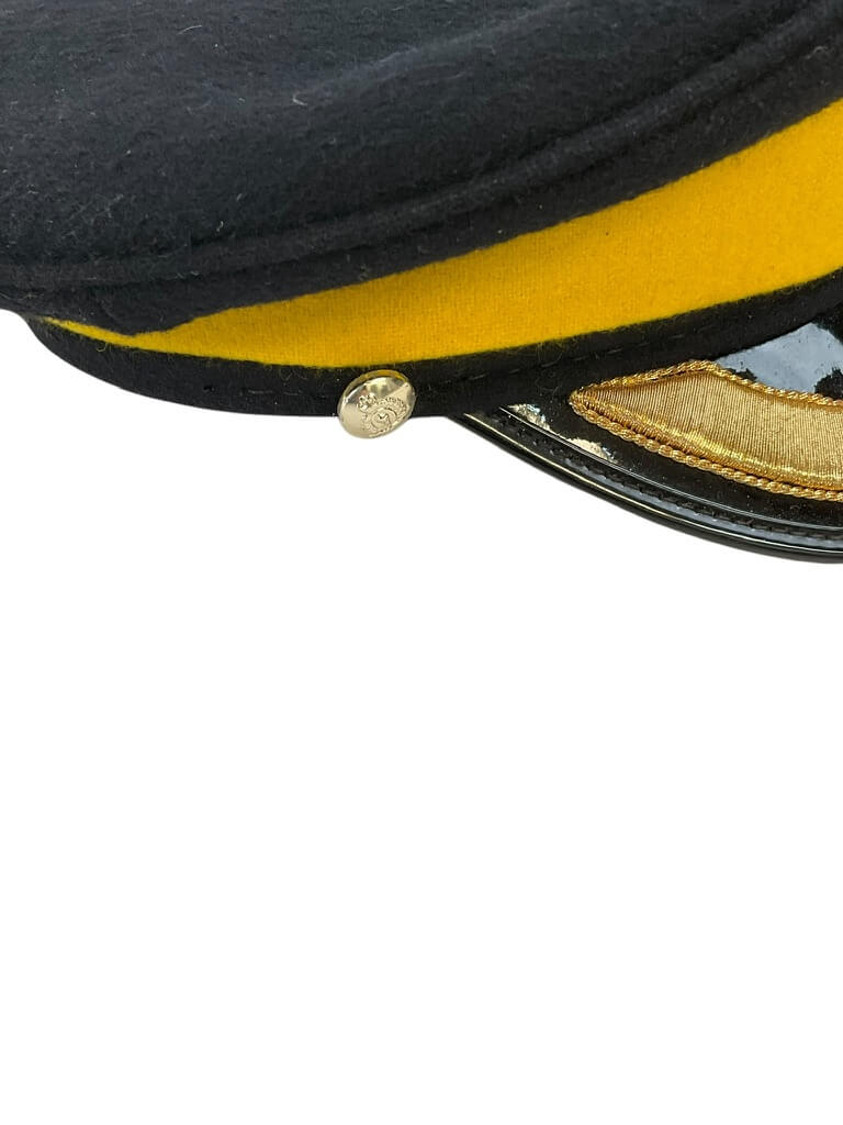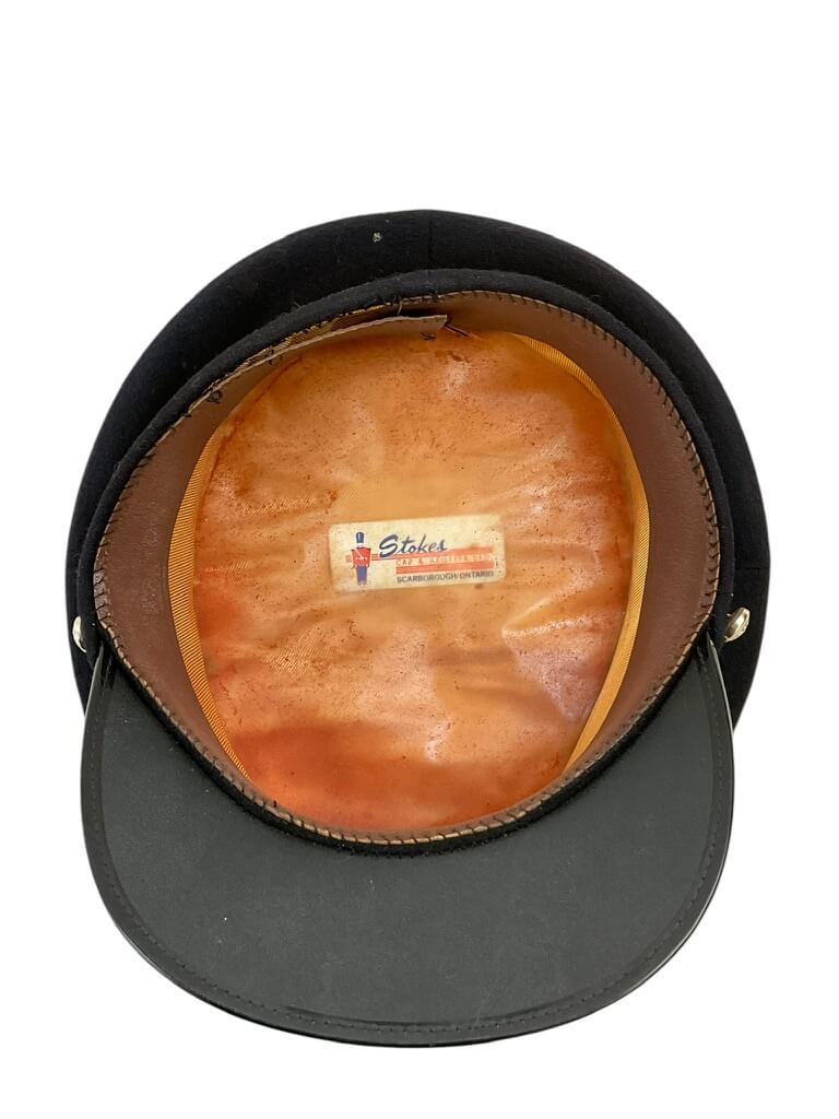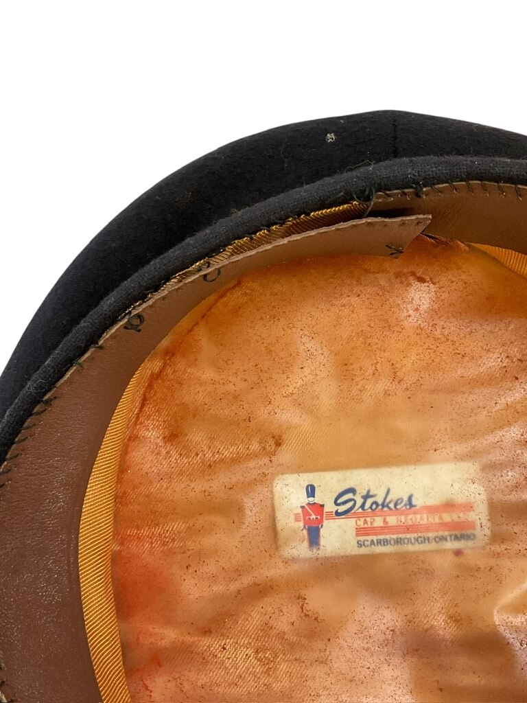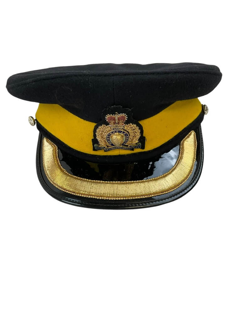 This is an authentic Royal Canadian Mounted Police (RCMP) Officers Peak Cap Hat in the size of 7 1/4. This classic piece of RCMP memorabilia is notable for its missing chin strap, adding a unique touch to its overall aesthetic. The hat is crafted with high-quality materials, ensuring durability and long-lasting wear. It features the iconic peaked design that is instantly recognizable and associated with the proud tradition of the RCMP. This cap is not just a piece of uniform, but a symbol of Canadian heritage. Its rich navy color, combined with the RCMP crest, perfectly encapsulates the spirit of the force. Whether you’re a collector of police memorabilia, a proud Canadian, or just an admirer of unique headwear, this RCMP Officers Peak Cap Hat is a noteworthy item.