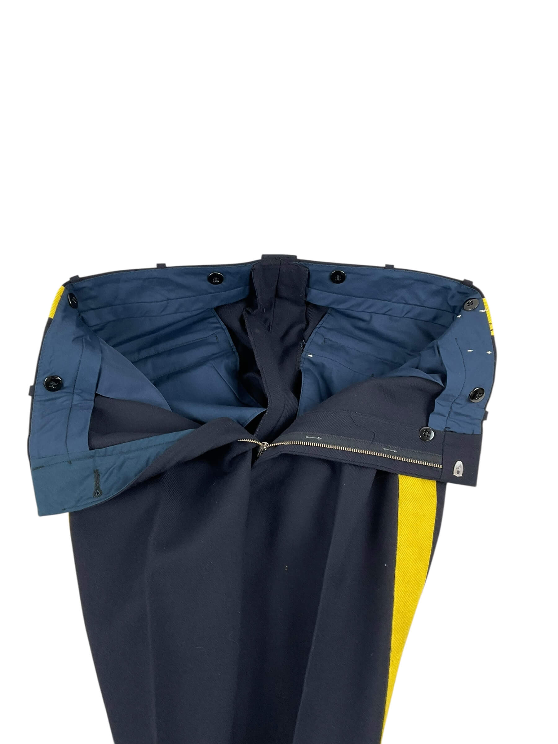 These Royal Canadian Mounted Police (RCMP) Pants are a true reflection of style and professionalism. With a waist size of 32 inches and length of 31 inches, these trousers offer a comfortable fit for everyday wear. They are made from high-quality cotton which guarantees durability and comfort, suitable for both outdoor and indoor use. These pants carry the iconic stripe, signifying the proud tradition and identity of the RCMP. The stripe is expertly sewn on the side of each leg, adding a touch of elegance and authenticity to the design. These RCMP trousers are a must-have for anyone seeking to represent or appreciate the esteem associated with the Royal Canadian Mounted Police. They are not just pants: they reflect a legacy.