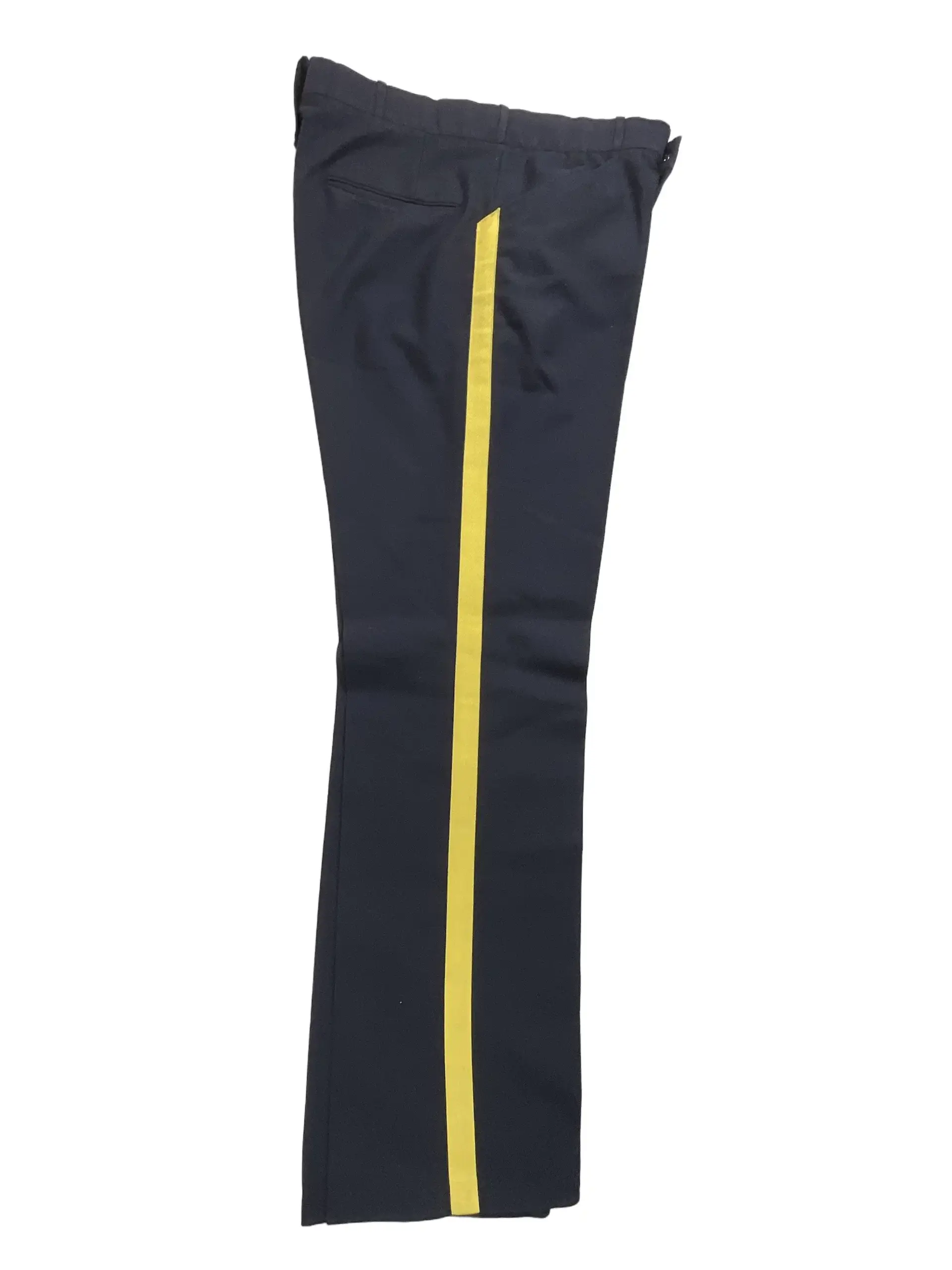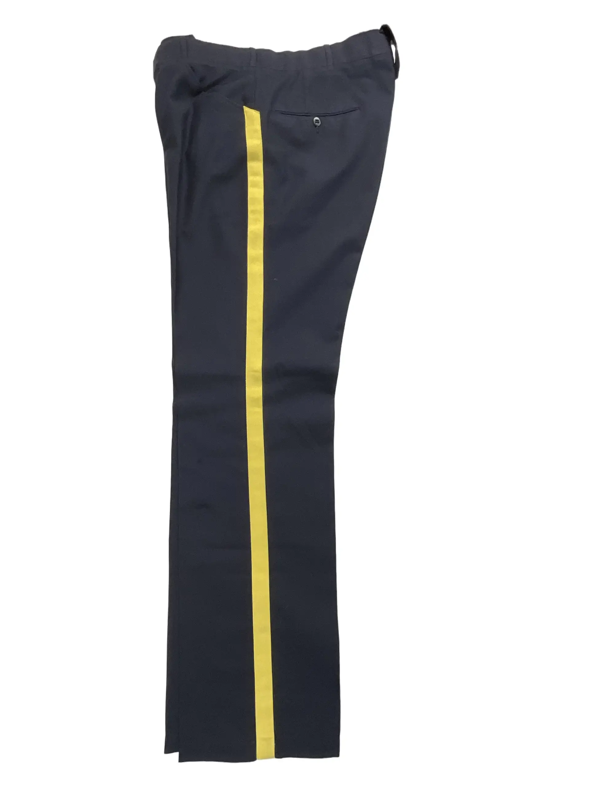 This listing features a pair of Royal Canadian Mounted Police (RCMP) trousers measuring 34 x 34 inches. These trousers are tailored from cotton fabric and include the distinct colored stripe along the outer seam, a hallmark of RCMP uniform pants. RCMP trousers are part of the official dress uniform, worn by members of the force during formal events, parades, and ceremonial duties across Canada. The
