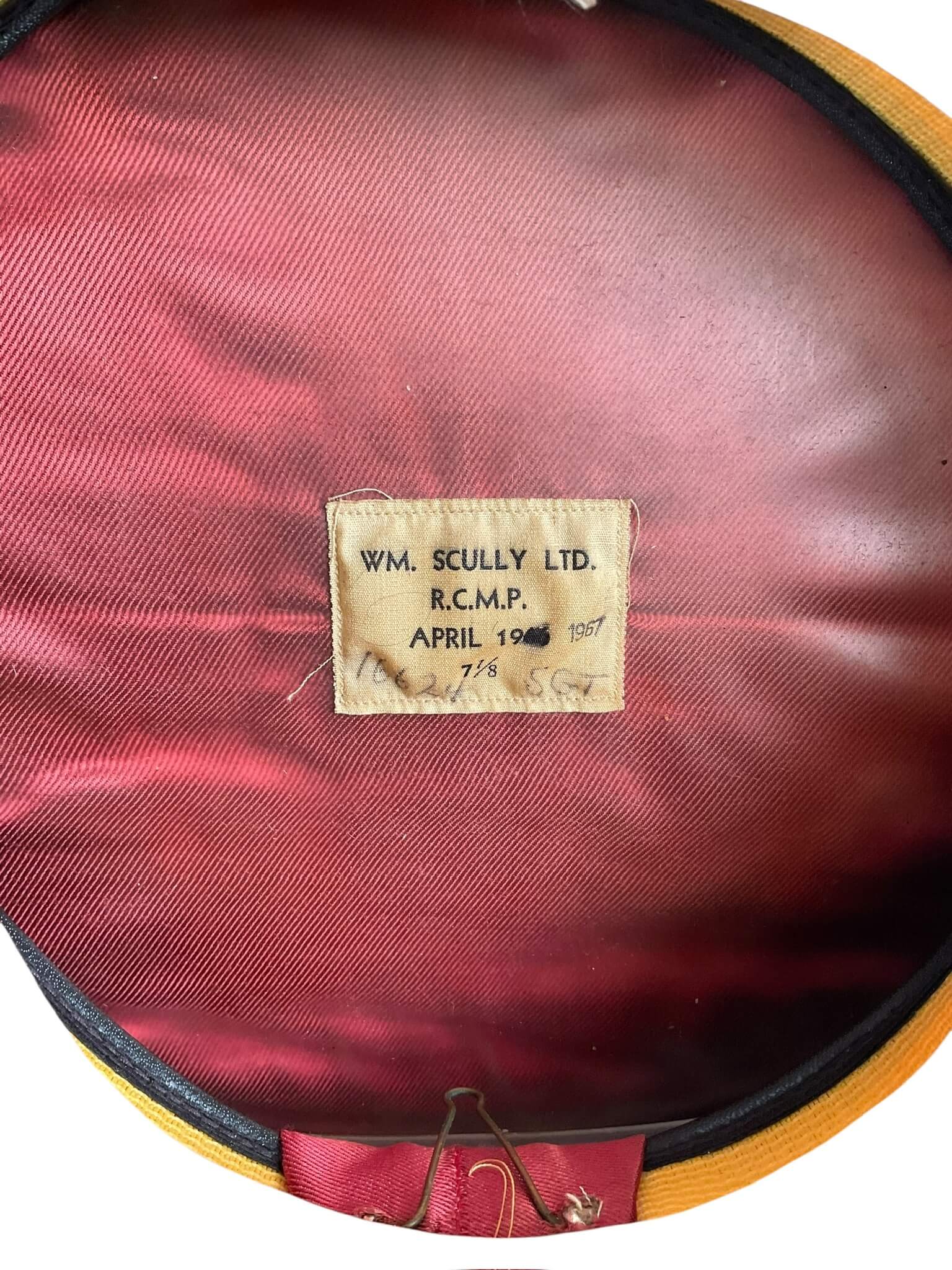 Royal Canadian Mounted Police RCMP Peak Cap Hat Named Dated 1967 Size 7 1/8