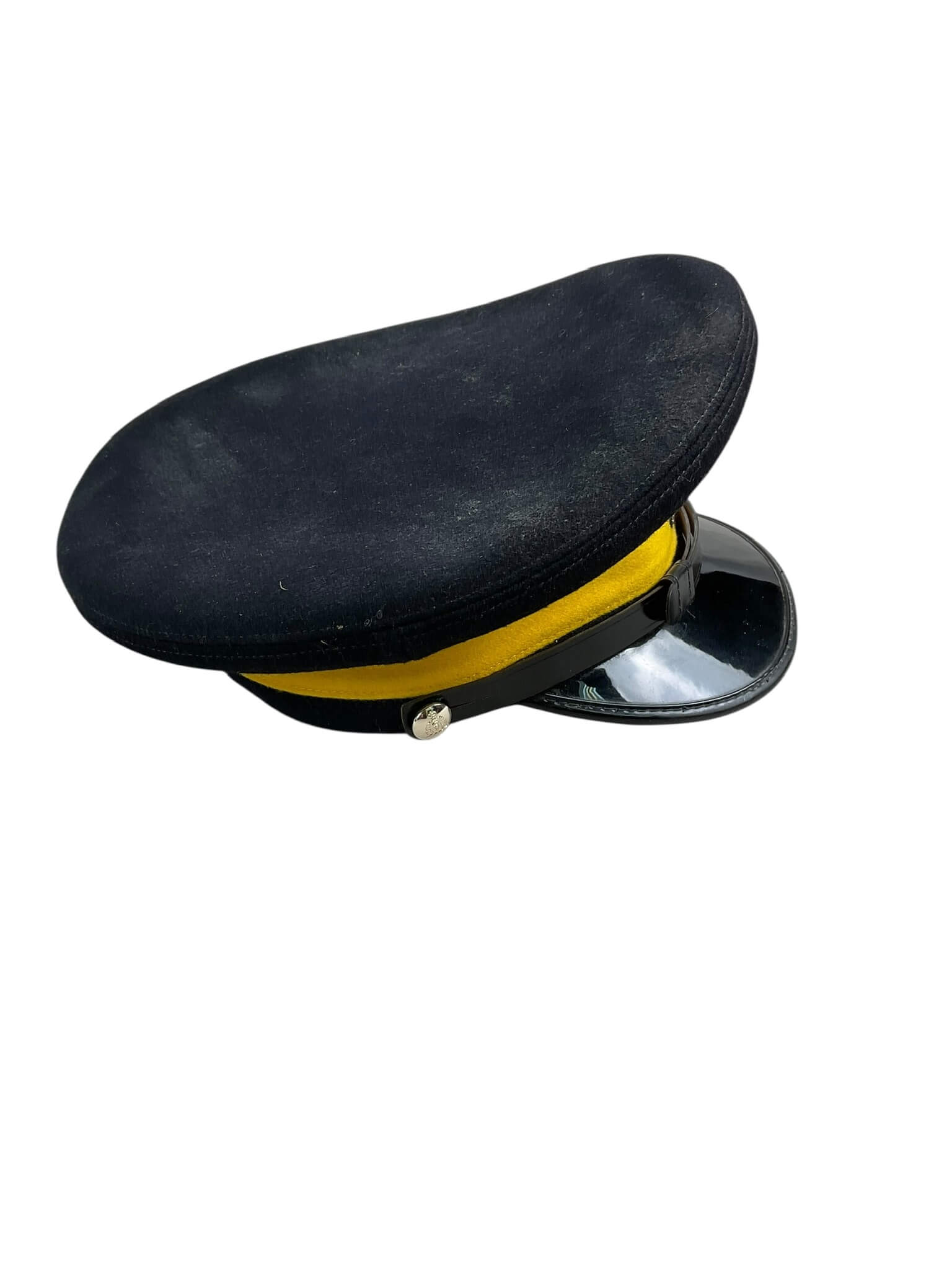 The Royal Canadian Mounted Police (RCMP) Peak Cap Hat named and dated 1967, size 7 1/8, is an authentic piece of historical Canadian law enforcement apparel. The crown of this headgear is the standard dark blue or ‘Mountie blue’ color complemented with a yellow-banded base, embodying the indispensable elements of RCMP uniforms. It features a dual peak structure which, in conjunction with the cap-badge, lends an air of authority to the wearer. As indicated by the inscriptions on the cap, it was produced in 1967, a significant year in Canada’s history as it marked the country’s centennial. With a circumference measurement of 7 1/8, it is designed to offer a comfortable fit for most adults. This RCMP peak cap offers a snapshot of Canadian law enforcement history, giving a nod to the iconic Mounted Police who played a vital role in shaping modern Canada. While it is a vintage item, it remains a symbol of Canadian