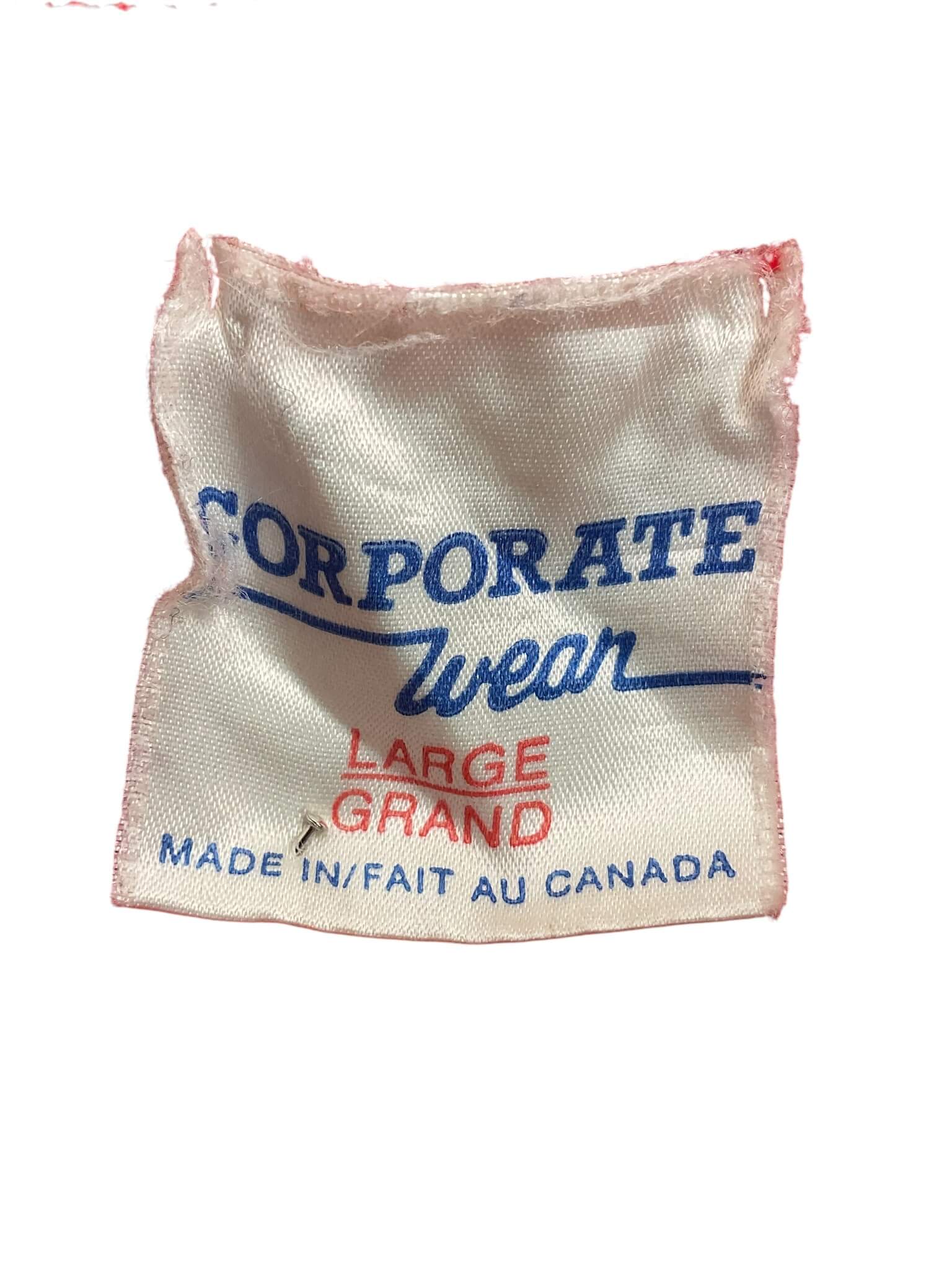 This listing is for a Royal Canadian Mounted Police (RCMP) red sweater in size Large. The garment is constructed from a durable fabric blend and features the signature bright red color associated with the RCMP uniform. This sweater would have been part of the RCMP’s official attire, likely used as cold weather or parade dress in conjunction with other standard-issue uniform elements. Distinctive features may include