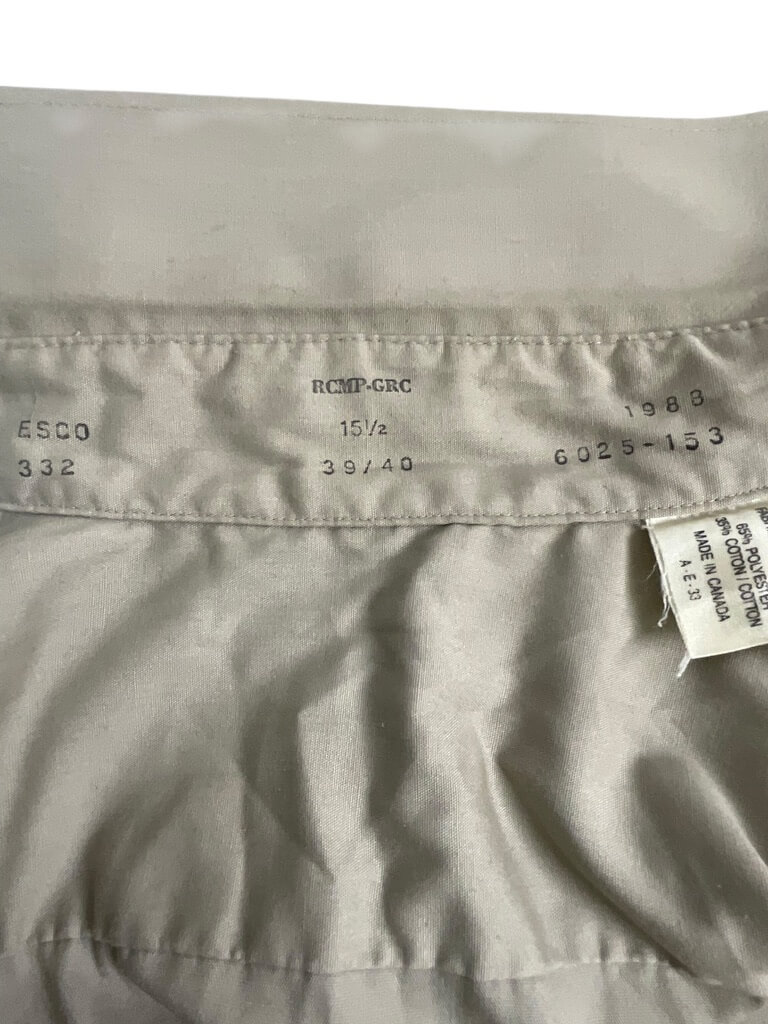 The Royal Canadian Mounted Police (RCMP) Short Sleeve Shirt in size 15 1/2 is an apparel item that represents Canada’s federal policing service. This shirt features the iconic RCMP insignia, is short-sleeved for comfort in warm weather, and comes in standard men’s size 15 1/2. Made with craftsmanship that ensures durability and fit.