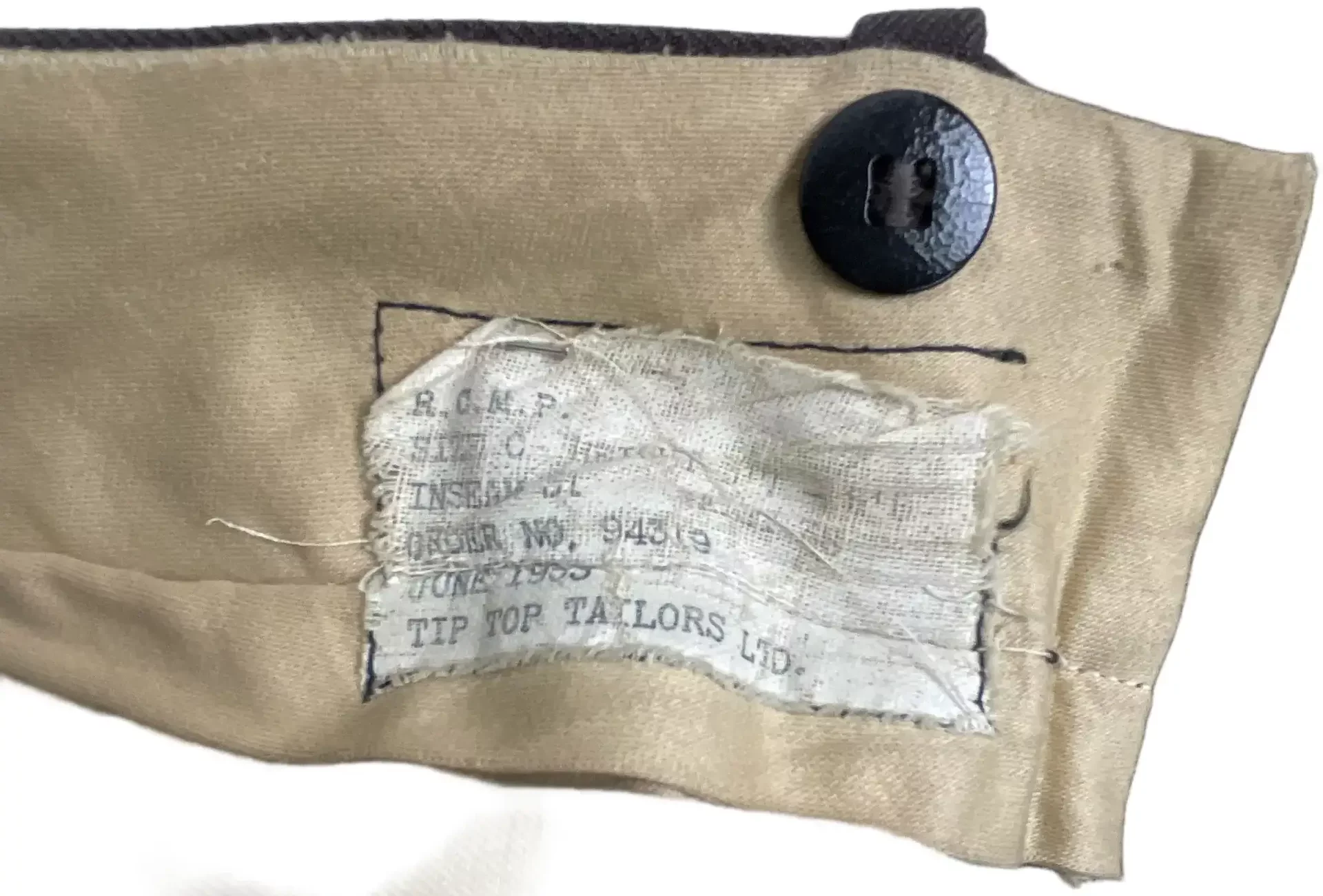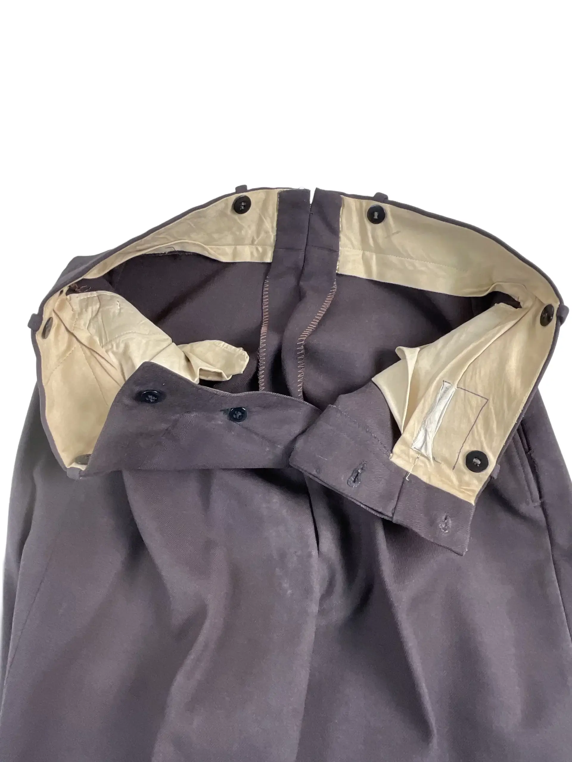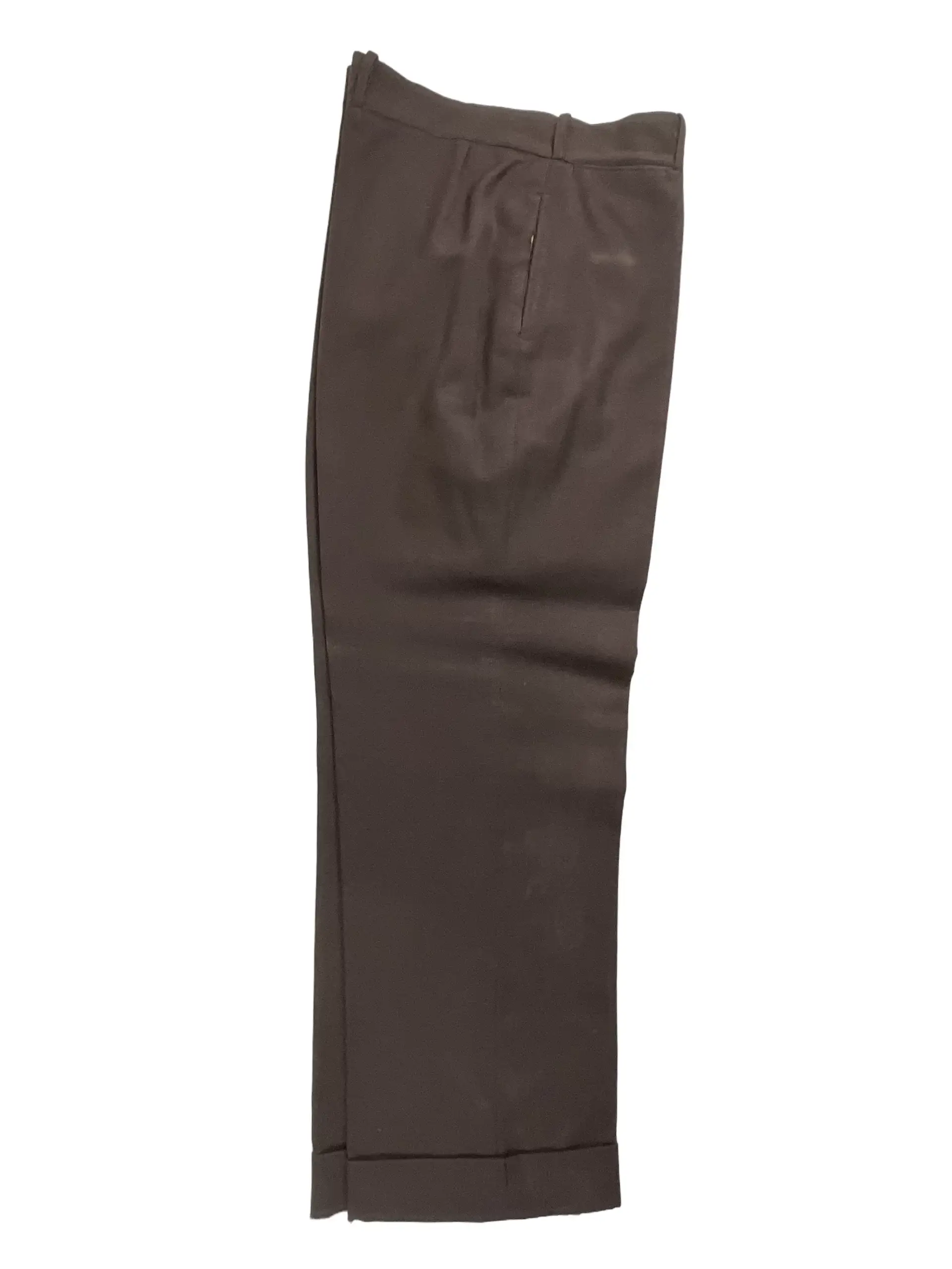 These Royal Canadian Mounted Police (RCMP) trousers are an authentic piece of Canadian law enforcement uniform. Designed specifically for members of the RCMP, the pants are tailored in a 33-inch waist by 31-inch inseam. The trousers are constructed from durable fabric suitable for regular use, consistent with official RCMP attire standards. They typically feature a high waist, side pockets, and red piping along the leg seams—an identifying detail associated with RCMP dress uniforms. The coloring is brown, reflecting the regimented appearance of Canadian mounted police uniforms. RCMP trousers such as these are used in both ceremonial and operational settings, signifying rank and allegiance within Canada’s federal police service. This item is significant for collectors of law enforcement memorabilia, military uniform enthusiasts, or historians studying the evolution of official Canadian police attire. All observable features are consistent with government-issued RCMP trousers from recent decades.