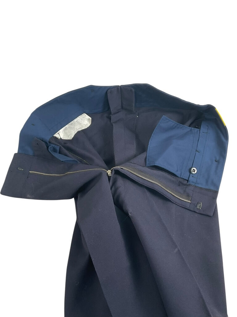 The Royal Canadian Mounted Police (RCMP) trousers, sized W 36″ X I 28″, dated 1985, are vintage pieces from the official RCMP uniform. Key characteristics include the traditional, rich navy-blue color and sturdy material, suitable for the rigorous tasks of a Mounted Police Officer. These trousers represent a slice of Canadian history and law enforcement apparel.