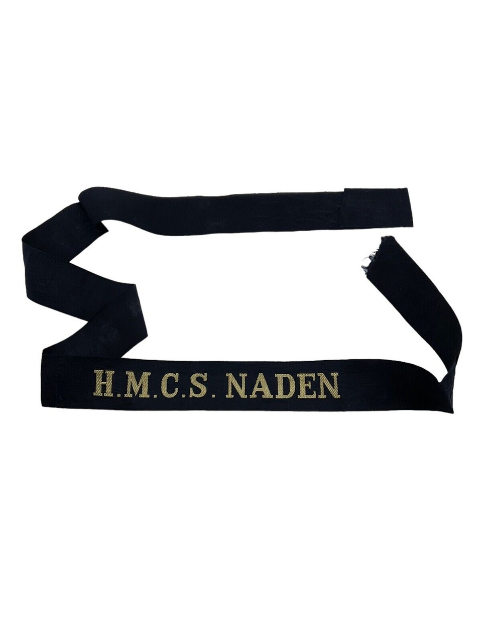 The “Royal Canadian Navy HMCS Naden Cap Tally” represents a storied piece of naval heritage, embodying the pride and tradition of the Royal Canadian Navy. The cap tally is an inscribed ribbon that identifies the wearer’s station, in this case, HMCS Naden. HMCS Naden is a prominent naval training facility in Esquimalt, British Columbia, playing a critical role in the development and education of Canada’s naval forces. Wearing this cap tally is a symbol of dedication and service, linking past and present sailors who have been part of Naden’s long history. Crafted from durable materials and emblazoned with gold lettering, it serves not only as a practical accessory but also as a cherished keepsake for those who have served. The HMCS Naden cap tally is a testament to the valor and commitment of those in the Royal Canadian Navy, connecting generations of maritime defenders.