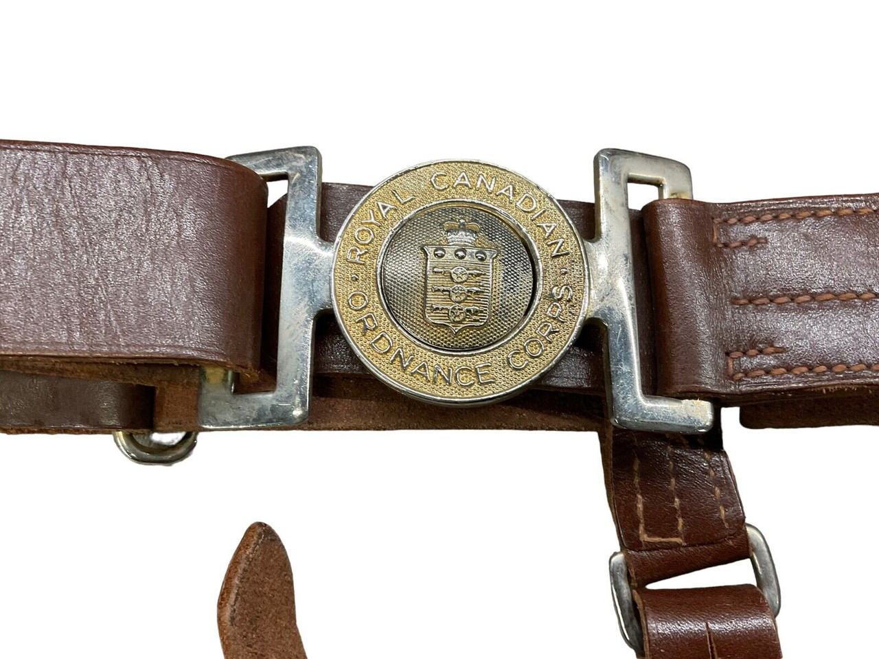 Royal Canadian Ordnance Corps Officers Brown Leather Belt With Buckle & Hangers