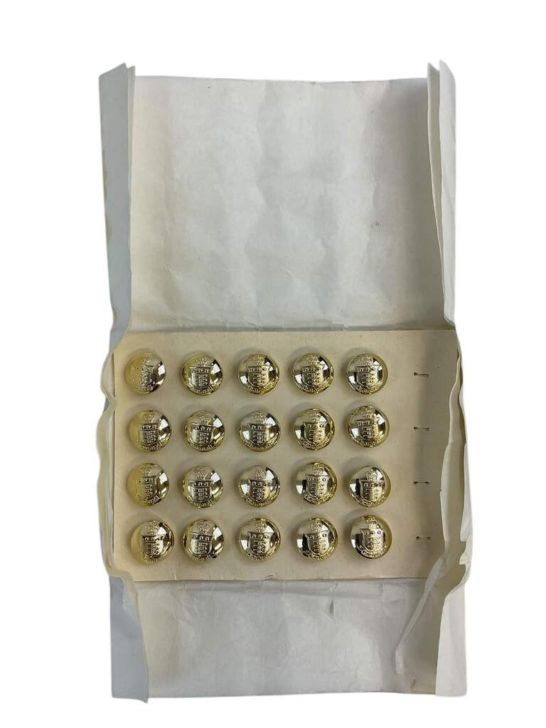 This product features a set of 20 Staybright buttons from the renowned military goods manufacturer, William Scully. These buttons are an authentic piece of history, belonging to the uniforms of the Royal Canadian Ordnance Corps, a division of the Canadian Army responsible for providing munitions and technical support. Each button comes with intricate detailing, reflecting the excellent craftsmanship synonymous with William Scully. The Staybright finish on these buttons ensures they retain their shine and luster even with age, adding a sense of timeless elegance. This collection is a must-have for military memorabilia collectors or history enthusiasts who appreciate the significance and heritage these buttons represent. They could also serve as unique, vintage embellishments for sewing or craft projects.