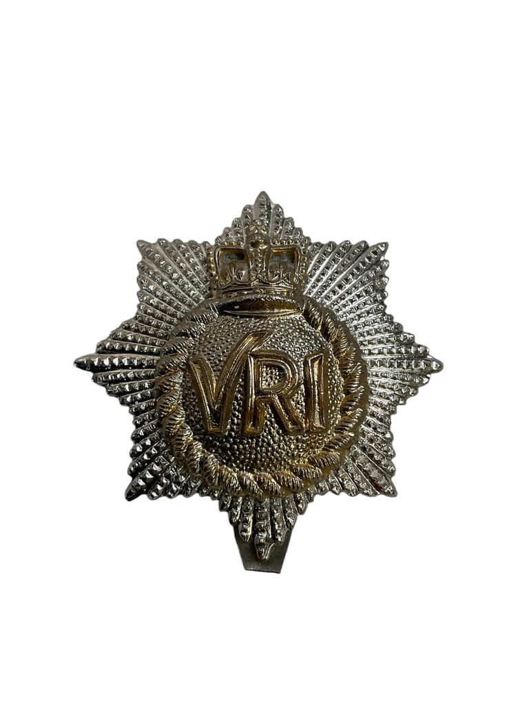The Royal Canadian Regiment Cap Badge is a significant emblem of the oldest regular infantry regiment in the Canadian Army. Crafted with intricate detail, this badge is not just military insignia, but a symbol of history, honor, and valor. It features the Victorian Crown, symbolizing the regiment’s Royal designation, along with the regiment’s Latin motto “Pro Patria” (For Country) inscribed at the bottom. The center showcases “VRI”, which stands for Victoria Regina Imperatrix, referring to Queen Victoria, the regiment’s first Colonel-in-Chief. The badge is often made of brass or white metal and is worn proudly on the beret by the soldiers of the Royal Canadian Regiment. Collectors, history enthusiasts, and military personnel revere it for its historical significance and the deep-rooted traditions it embodies.