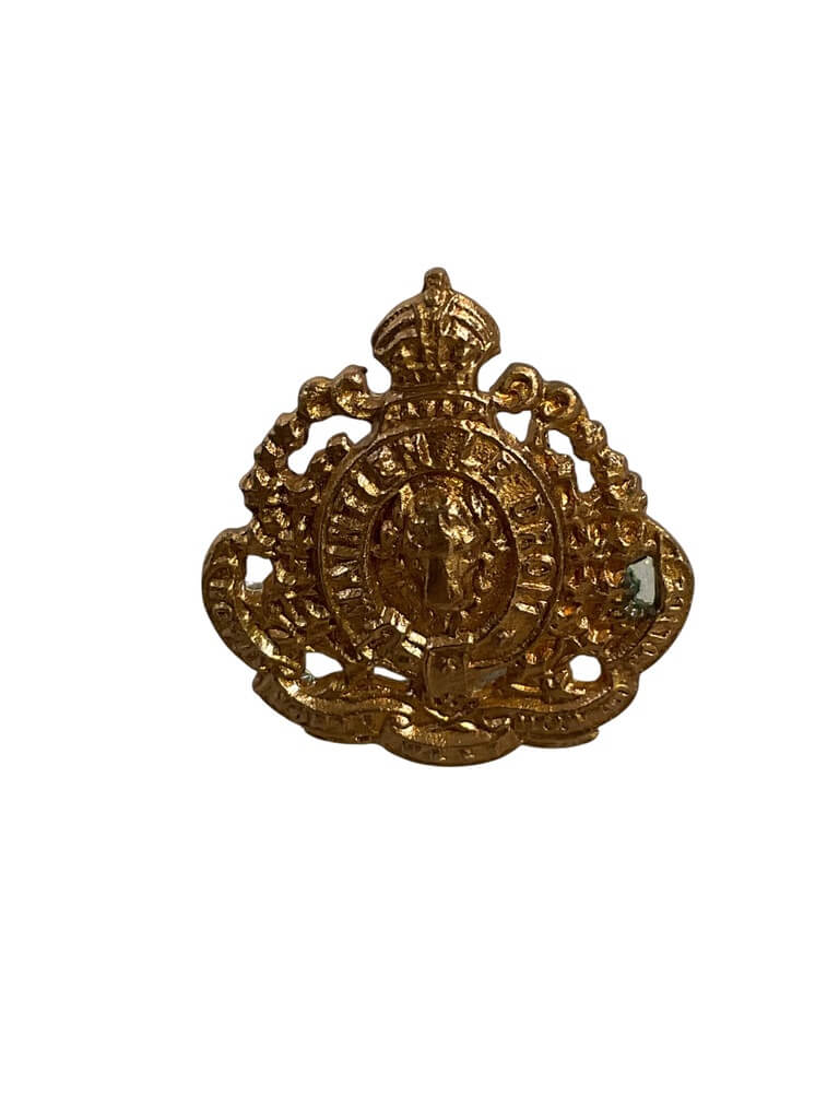 The “Royal North-West Mounted Police (RNWMP) Collar Insignia Single” is an intriguing piece of historical memorabilia that speaks to Canada’s rich past. The insignia, which once adorned the uniforms of the erstwhile law enforcement agency, RNWMP, displays a meticulous level of craftsmanship. The detailed design showcases the iconic Royal Crown and the initials of RNWMP, enhancing its aesthetic appeal. Its sturdy construction suggests that it was made to stand the test of time, much like the legacy of the RNWMP itself. This artifact serves not only as a collectible item for history enthusiasts and collectors but also as a testament to the valor and dedication of the Royal North-West Mounted Police. Its storied past and unique design make it a truly valuable addition to any collection, offering a tangible connection to a pivotal era in Canadian history.
