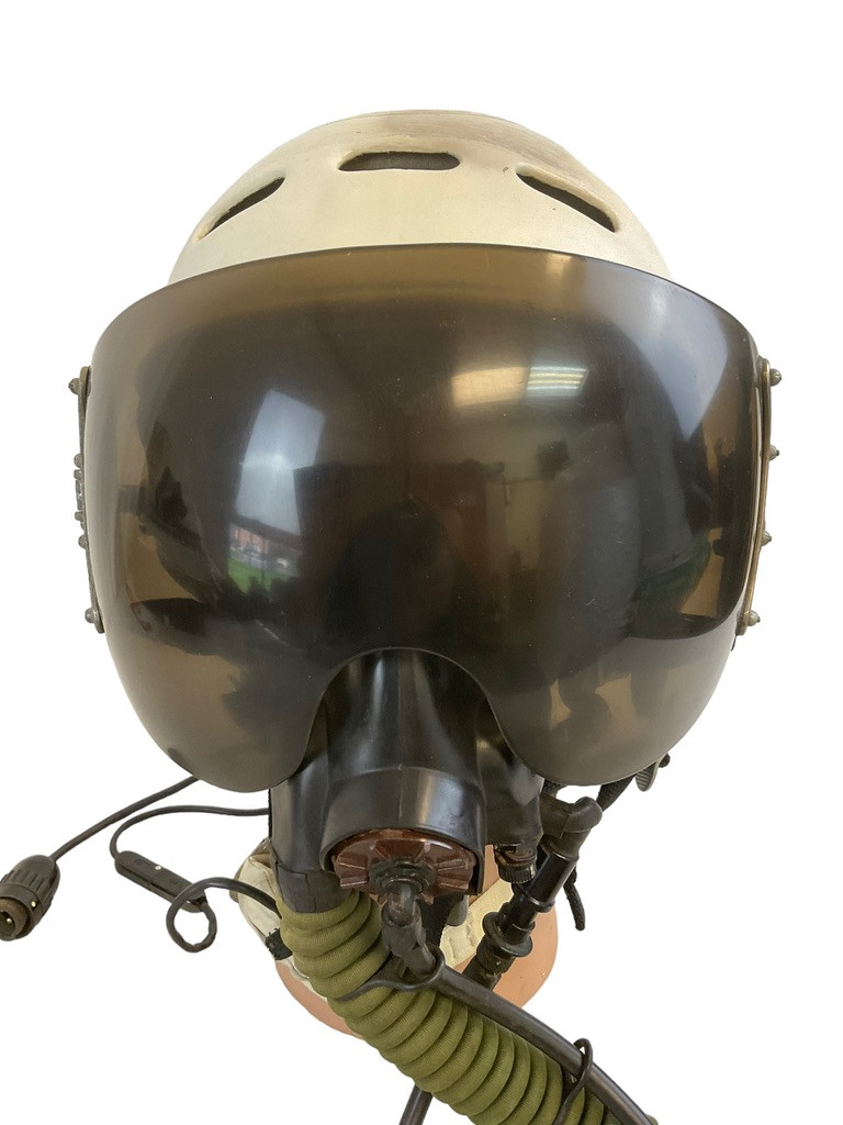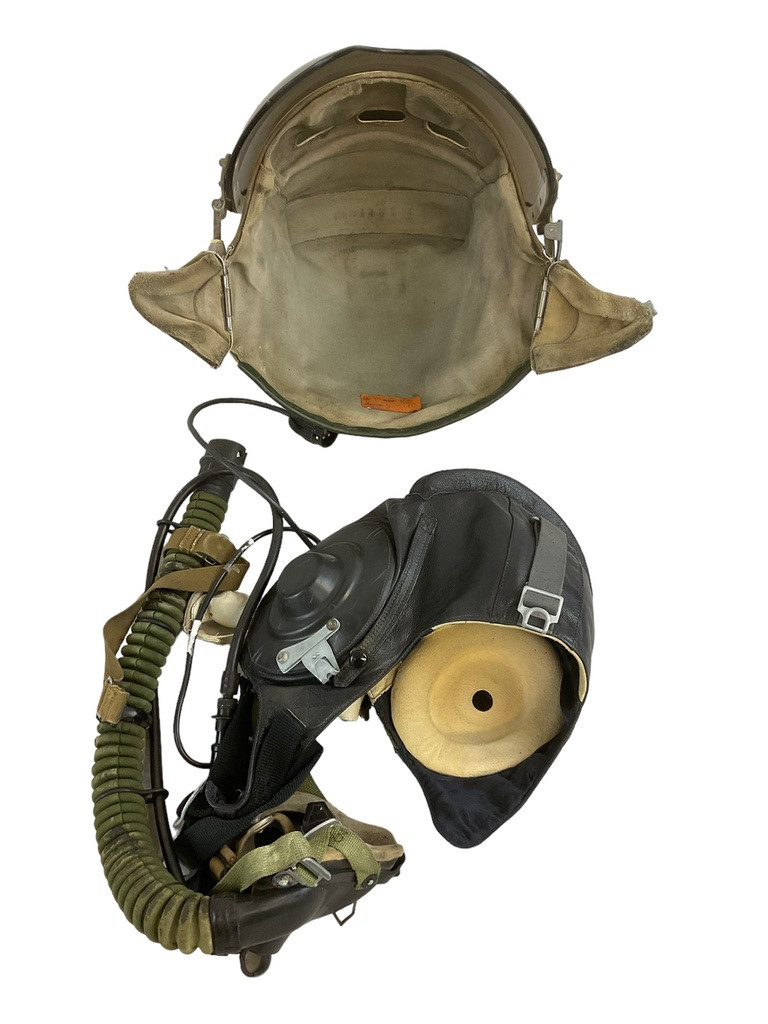The Russian Soviet Air Force ZSH-3 pilot’s helmet, coupled with the KM-32 oxygen mask and an additional leather helmet, represents a fascinating piece of aviation history. The ZSH-3 helmet, known for its durability and reliability, was extensively used by Soviet pilots during the Cold War era. Paired with the KM-32 oxygen mask, which ensured pilots could breathe comfortably at high altitudes, this ensemble showcases the advanced aeronautical engineering of its time. The accompanying leather helmet adds an extra layer of protection and warmth, crucial for missions in high-altitude, cold-weather environments. This authentic gear not only reflects the technological advancements of the Soviet Air Force but also serves as a symbol of the brave airmen who wore it. Ideal for collectors, historians, or enthusiasts of military aviation, this set offers a unique glimpse into the legacy of the Soviet Union’s pioneering contributions to aerial combat and exploration.