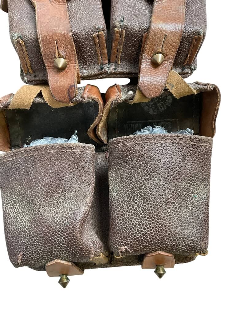 This pair of Russian Soviet Ammo Pouches is a remarkable piece of military history. Crafted during the era of the Soviet Union, these pouches carry a distinct aesthetic that’s emblematic of the period. Made with robust materials designed for the rigors of military life, these pouches were originally intended to carry ammunition for soldiers on the front lines. Each pouch features multiple individual compartments, providing ample space for storing various small items. They are secured by sturdy, heavy-duty fasteners, ensuring the contents remain safe and secure. The dark, weathered finish gives these pouches an authentic, vintage look, making them an ideal choice for collectors, history buffs, or reenactment enthusiasts. They not only serve as a practical accessory but also as a tangible reminder of a significant period in world history. Own these Russian Soviet Ammo Pouches and appreciate the unique blend of utilitarian design and historical significance they represent.