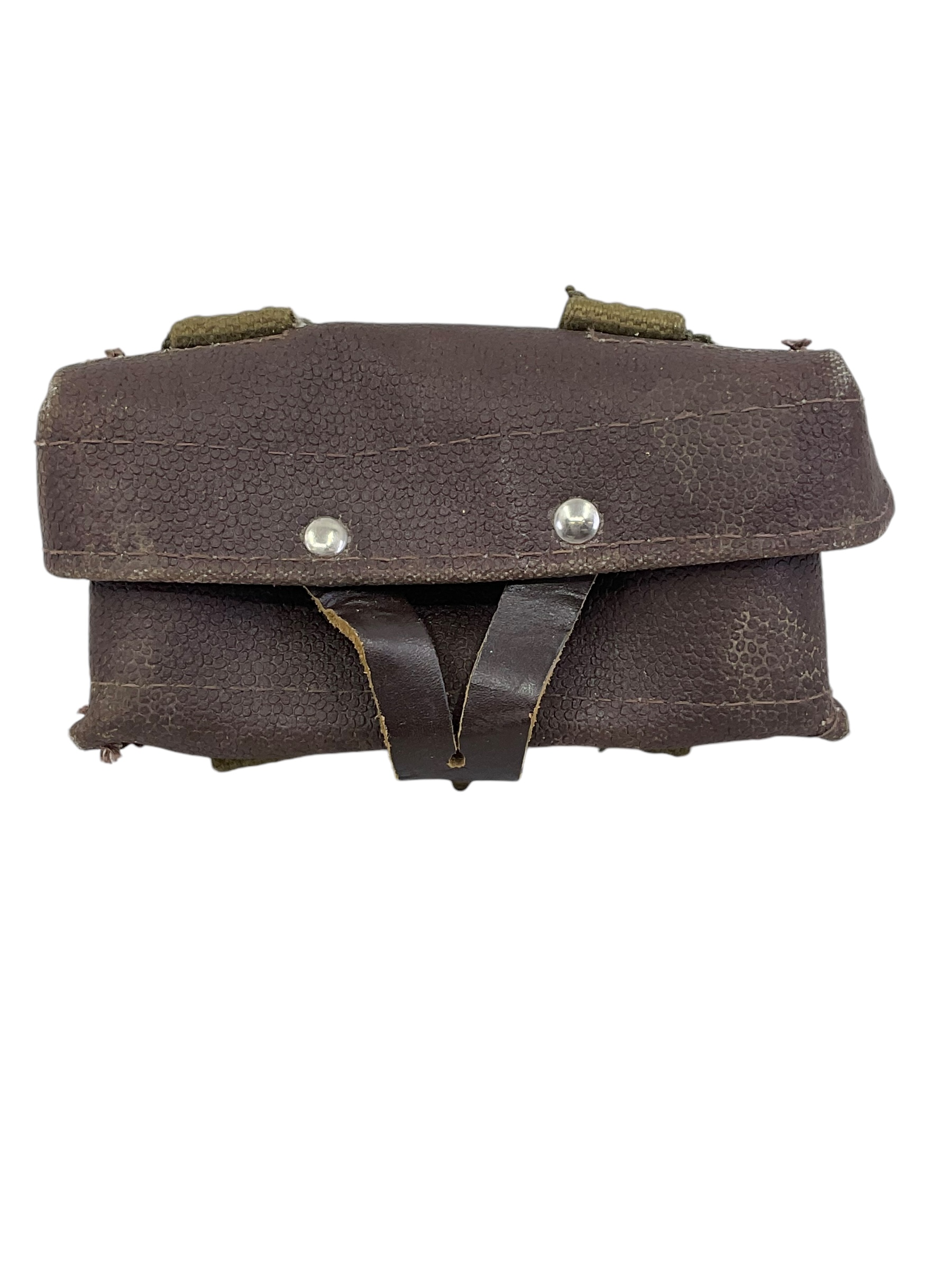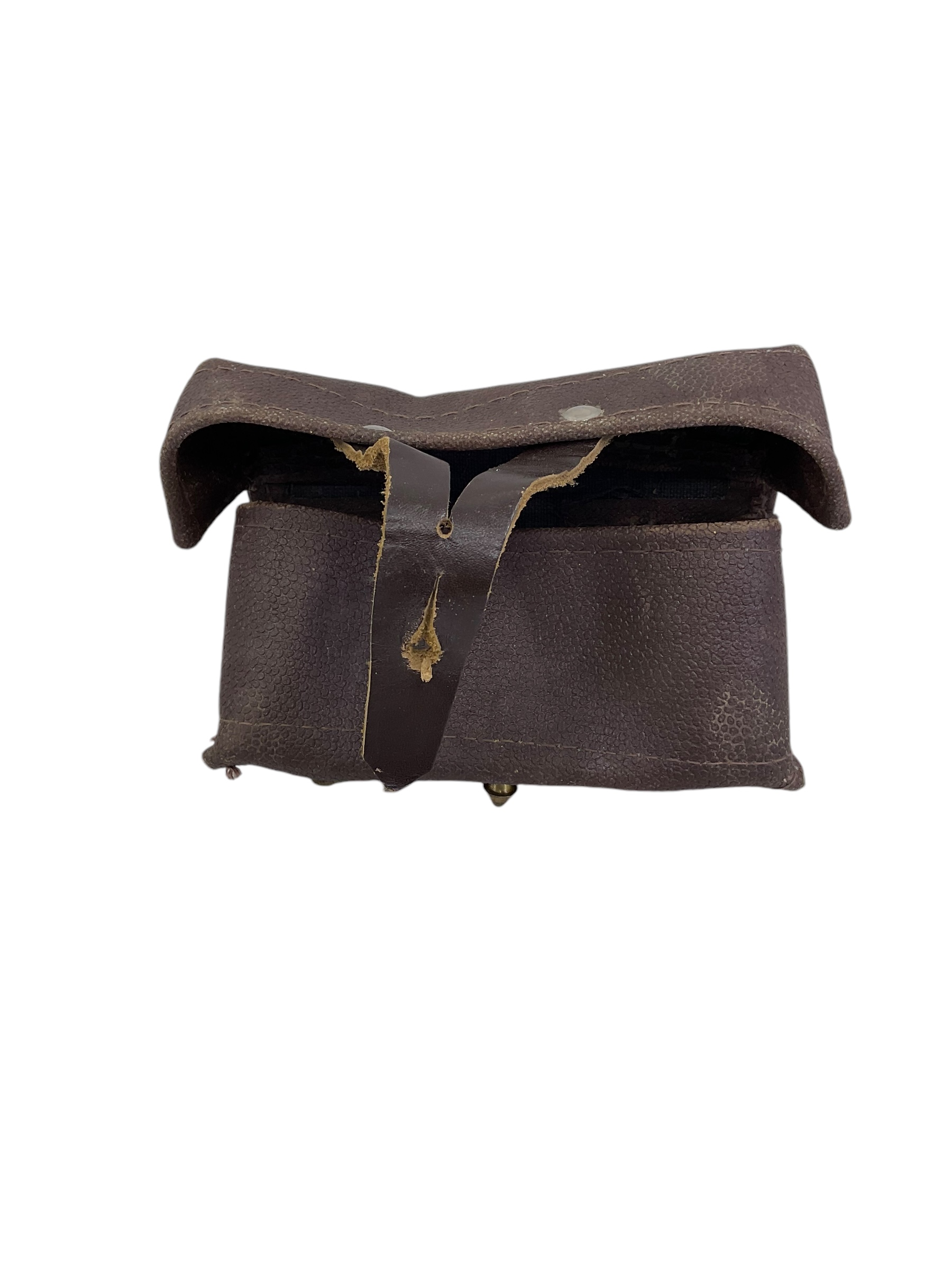 This item is a genuine, vintage Russian Soviet Cold War SKS rifle ammo clip pouch. Carrying a sense of history, it was used by Soviet soldiers during the Cold War period. The pouch is designed to carry SKS rifle ammunition clips, featuring solid construction with sturdy, durable materials. It bears the iconic Soviet military green color and often showcases signs of wear and tear, reflecting its use in harsh conditions. It typically has two compartments, each capable of holding multiple ammunition clips. The pouch closes securely with a flap cover and buckle system, which can withstand rugged use. Whether you’re a military history enthusiast, a collector, or someone who appreciates unique, historical items, this Russian Soviet Cold War SKS rifle ammo clip pouch is a fascinating acquisition.