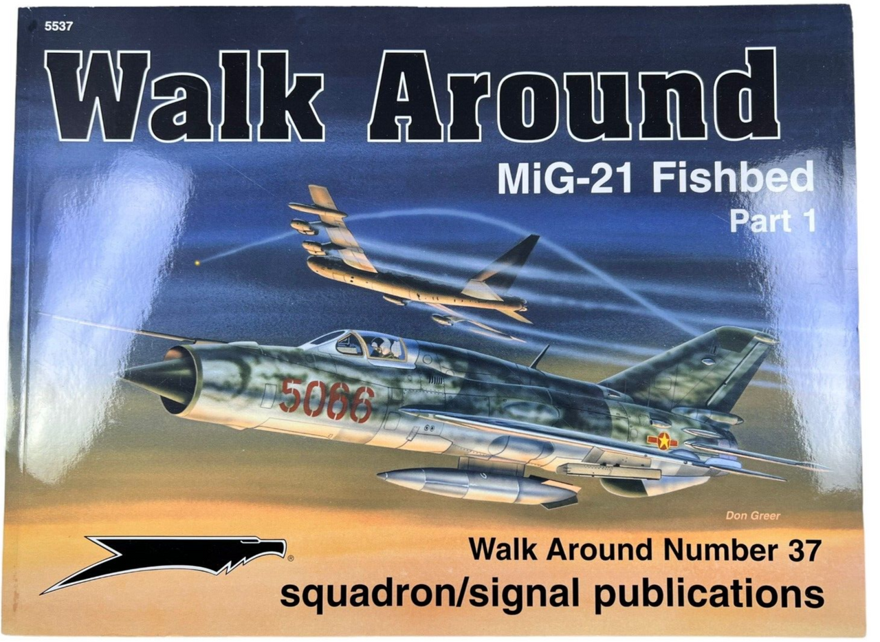 This is a used softcover Russian Soviet Walk Around MiG 21 Fishbed Part 1 Squadron Signal No 37 Reference Book. Total of 80 pages with lots of pictures and information.