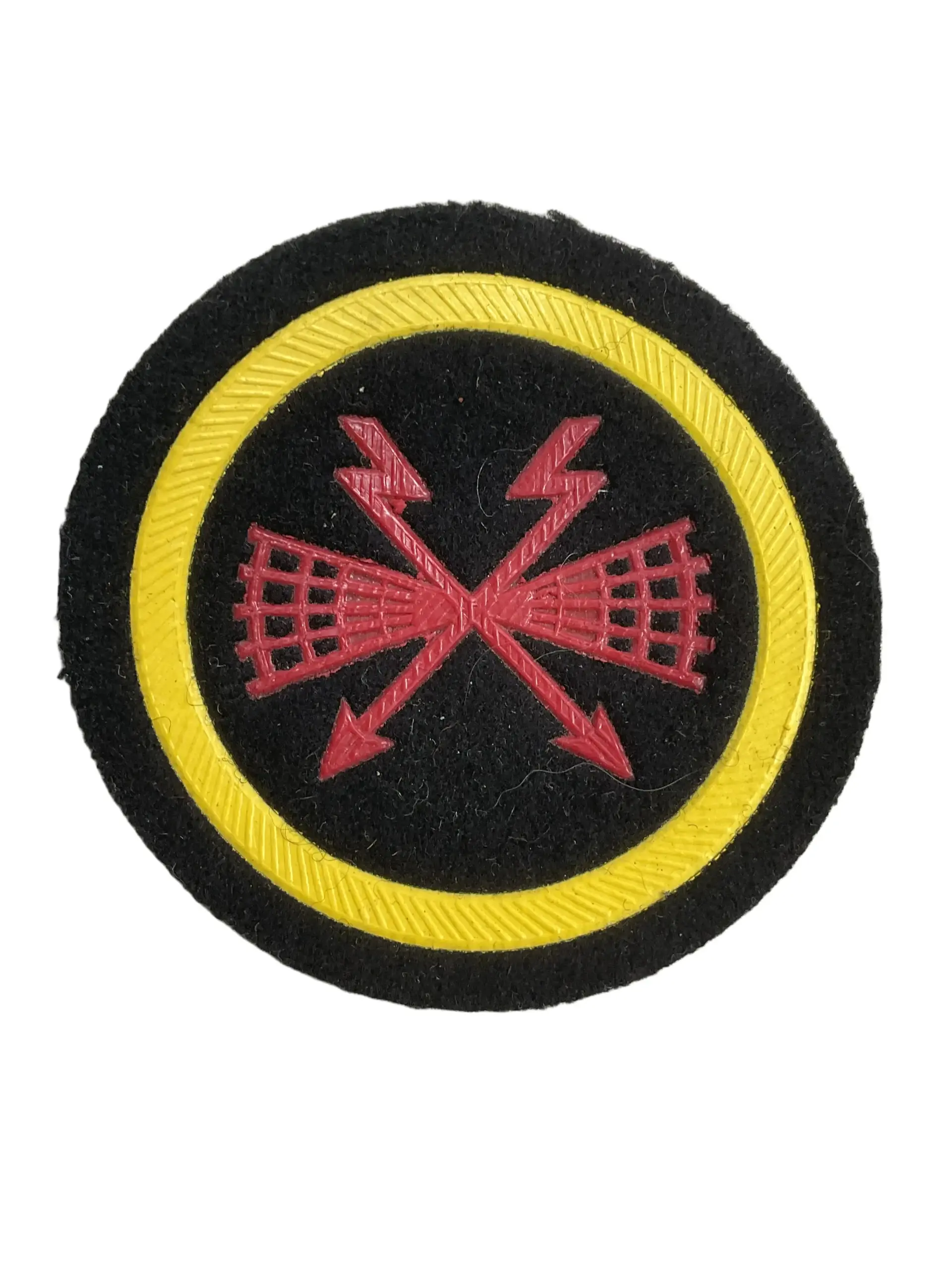 The Russian Soviet Navy Senior NCO Signals and Radio Specialist Trade Patch Insignia is a military uniform emblem awarded to non-commissioned officers serving as communications and radio specialists within the Soviet Navy. This insignia was designed to identify personnel with specialized training and duties related to naval signal operations, wireless communication, and radio equipment maintenance. The patch typically features symbolic elements associated with naval communications, such as lightning bolts or antenna motifs, rendered in gold or yellow thread on a dark backing, reflecting the branch colors of the Soviet Navy. Sewn onto the sleeve of naval uniforms, the insignia denoted both rank and specialist qualification, supporting order and organization within Soviet naval forces from the mid-20th century until the dissolution of the Soviet Union in 1991. The trade patch represents a key aspect of Soviet military uniform tradition and is valued by collectors for its historical association with Cold War-era naval operations.