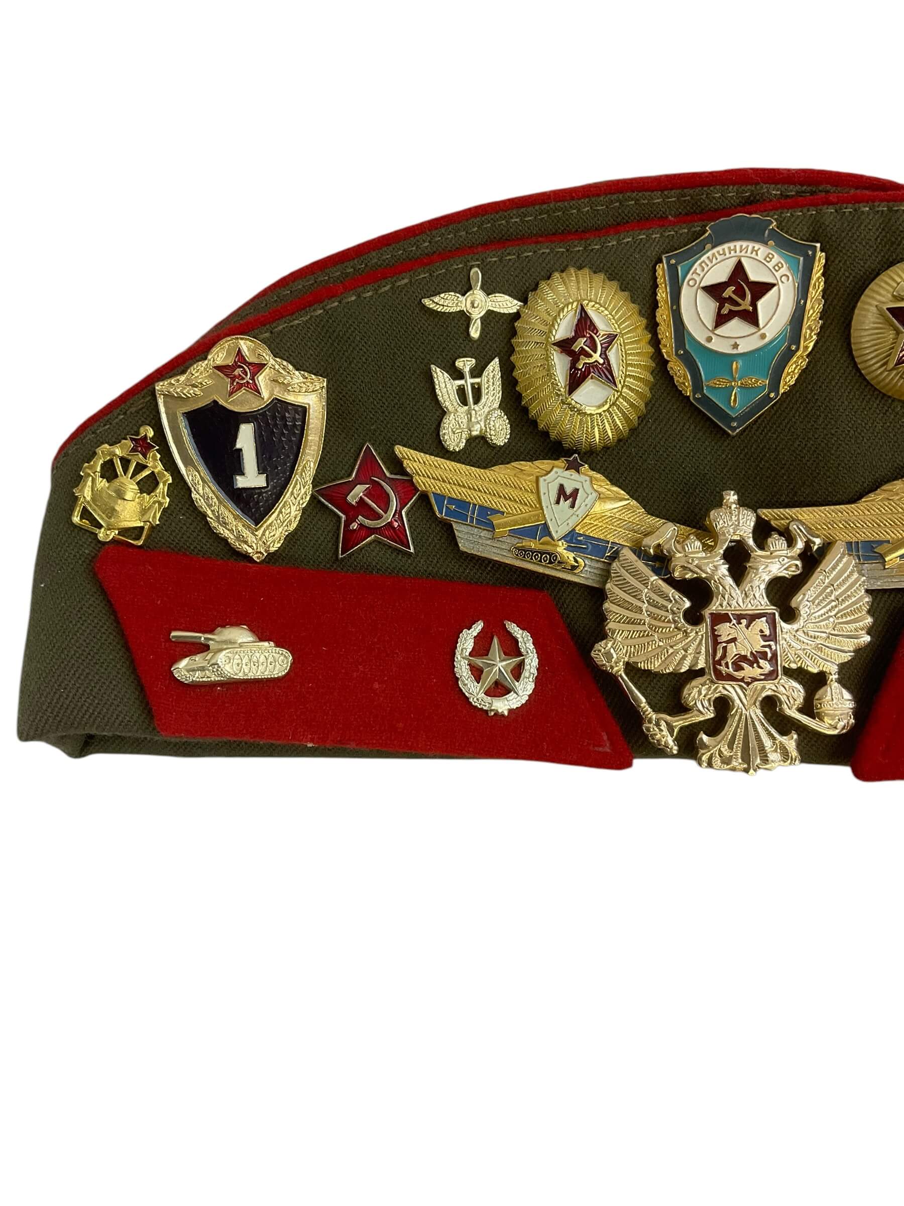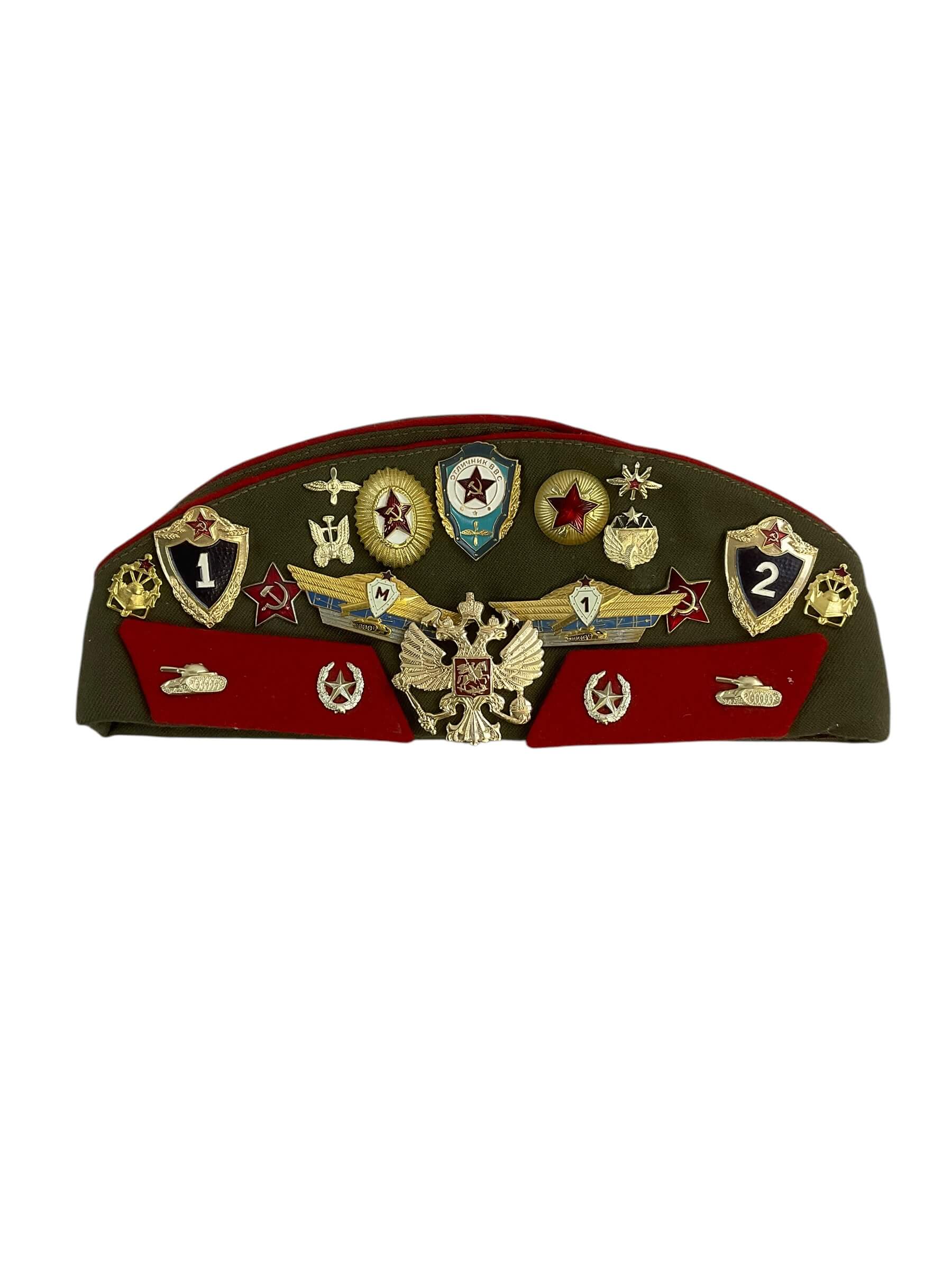 This item is a genuine Russian Soviet Wedge Cap dating back to 1992, carrying a rich history of the post-Soviet era. The cap is adorned with original patches, each marking various ranks and regiments, presenting a fascinating insight into the Russian military hierarchy of that period. Crafted from quality fabric, the cap boasts an iconic ‘wedge’ shape, a design synonymous with Russian military headgear. Its 1992 date stamp adds to its authenticity and historical value, making it an ideal collectible for history enthusiasts or military memorabilia collectors. This Russian Soviet Wedge Cap with Patches is not just a piece of headgear, but a slice of history that embodies the strength and spirit of the Russian military.
