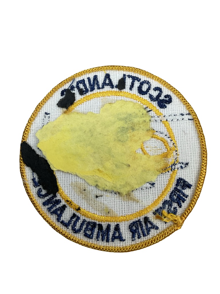 This embroidered patch represents Scotland’s first air ambulance helicopter, commemorating a significant advancement in the country’s emergency medical response services. The design features details associated with early Scottish air ambulance operations, including appropriate insignia, colors, and aircraft imagery. Air ambulance services in Scotland began in the late 20th century, providing rapid transport for patients from remote and rural areas to specialized medical facilities. The introduction of helicopter-based emergency medical transport marked a milestone in improving healthcare accessibility across Scotland, particularly in regions where ground-based ambulance services faced challenging terrain and distances. This patch would have been worn by crew members or issued as a commemorative item, reflecting pride in pioneering air medical support within the nation. The patch is crafted with durable materials suitable for uniform application or collection display. Its historical relevance is associated with the growth and modernization of Scotland’s emergency healthcare system. Dimensions and backing type may vary.