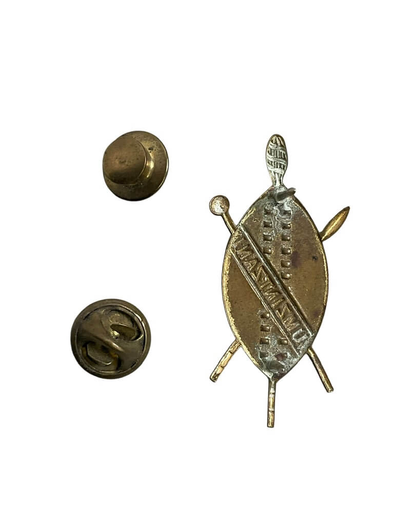 The ‘South African Prince Albert’s Guard Umzintzani Collar Insignia Single’ is a distinctive piece of military memorabilia hailing from the historical Prince Albert’s Guard of South Africa. This Umzintzani collar insignia is a unique emblem of honor, showcasing the rich heritage and brave history of the esteemed infantry unit. The insignia is an intricately detailed piece, exuding an aura of military prestige and tradition. It is a single piece, making it a rare collectible for military enthusiasts and historians alike. The elements of the insignia represent the Guard’s values and missions, creating a visual narrative of their role in South African history. This authentic South African Prince Albert’s Guard Umzintzani Collar Insignia is an exceptional artifact that encapsulates a significant part of South Africa’s military legacy.