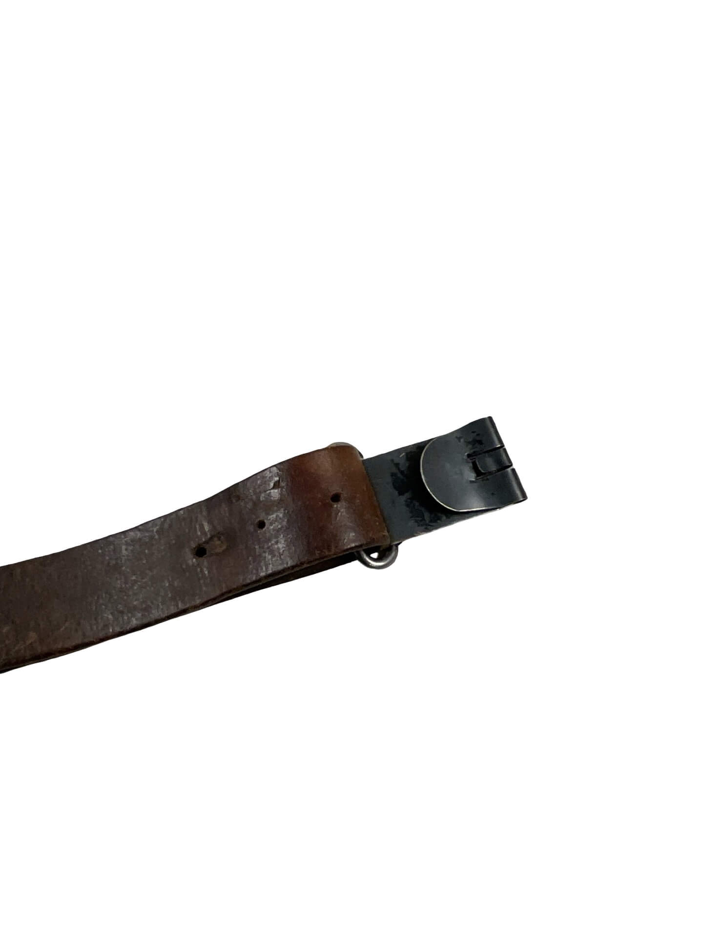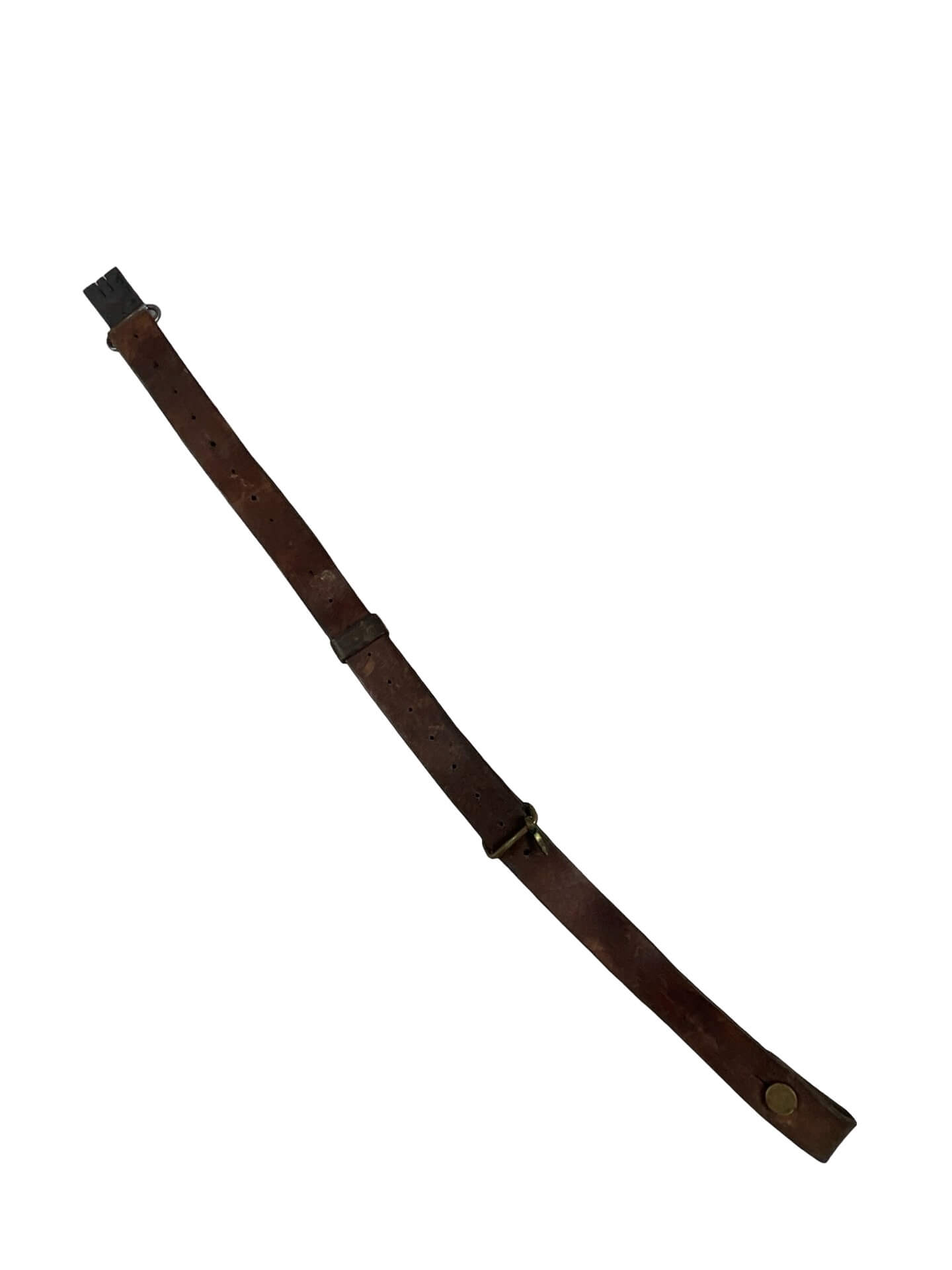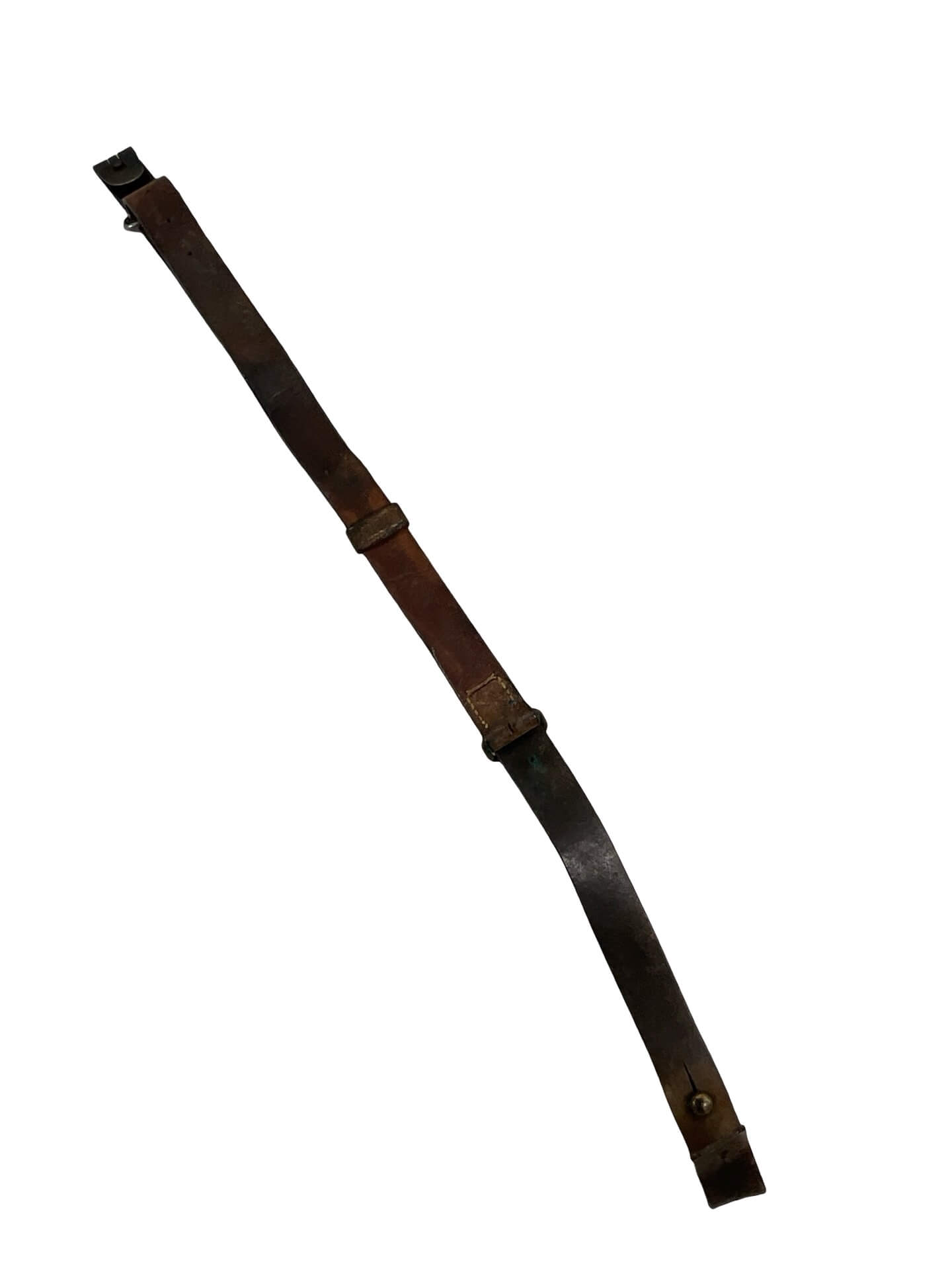 The Swedish M96 M38 Brown Leather Rifle Sling is a standard accessory originally issued for use with the Swedish Mauser Model 1896 (M96) and Model 1938 (M38) military rifles. Manufactured from durable brown leather, this sling features metal hardware, including an adjustment buckle and button-stud closure, enabling users to securely attach and adjust the sling to their preference. It measures approximately 47-48 inches in length and about 1 inch in width, dimensions that are consistent with Swedish military specifications. The brown leather construction provides both functional support and period-correct appearance for collectors and reenactors. This sling was widely used by Swedish armed forces throughout the 20th century for carrying and stabilizing the rifle during field operations. Original slings may display varying degrees of wear, surface markings, or manufacturing stamps identifying the depot or year of production. The item serves as an authentic accessory for Swedish Mauser rifles and similar period firearms.
