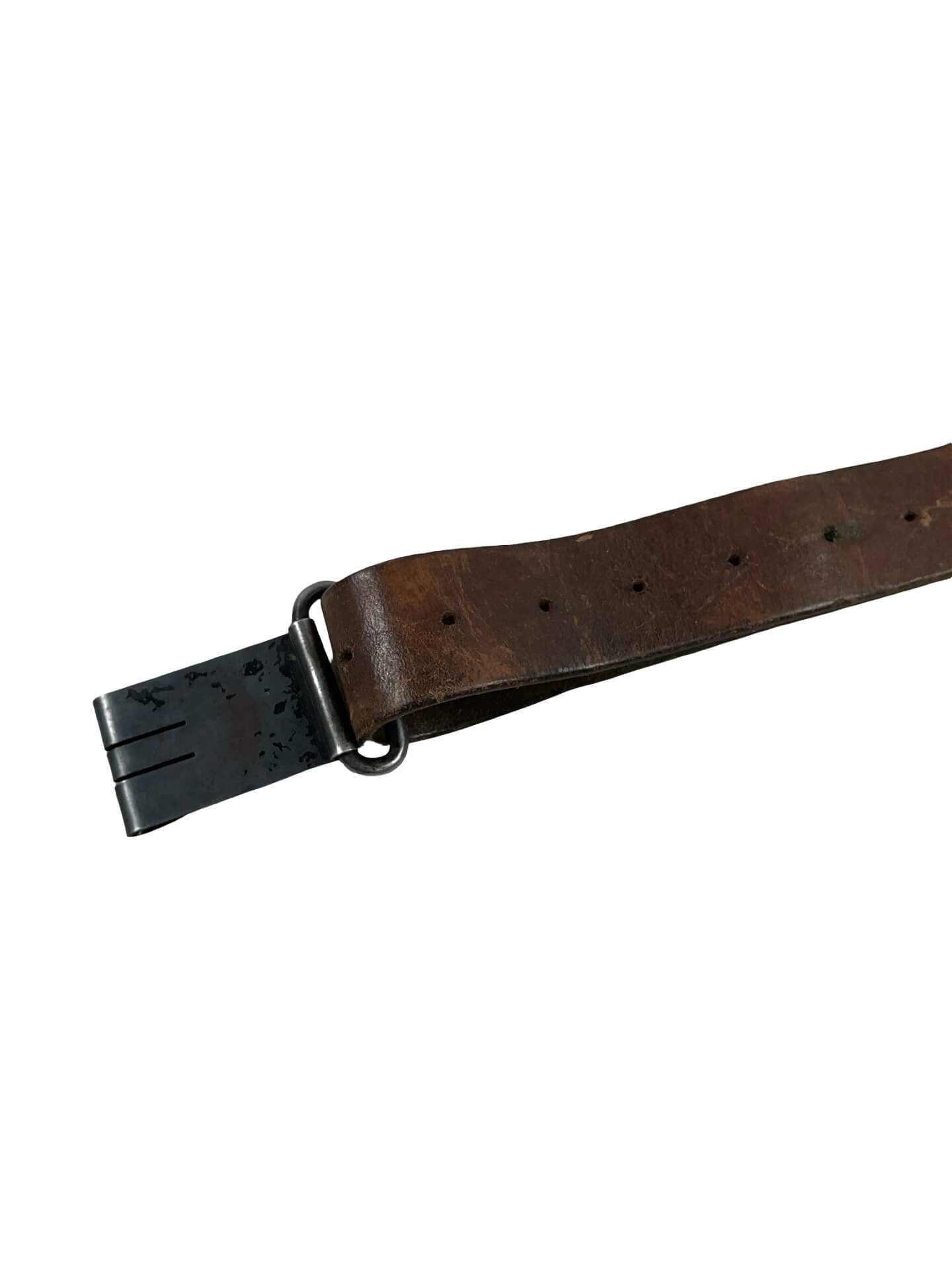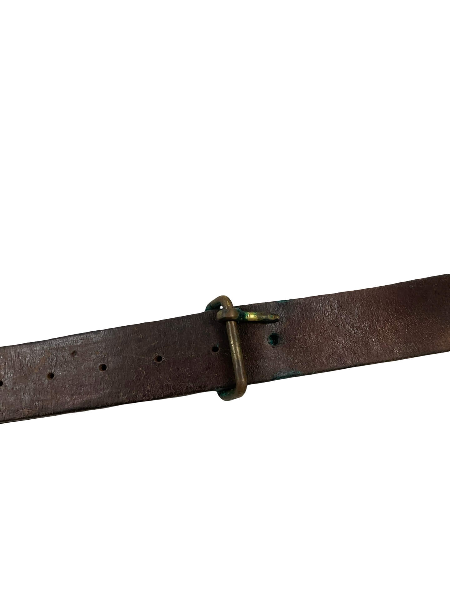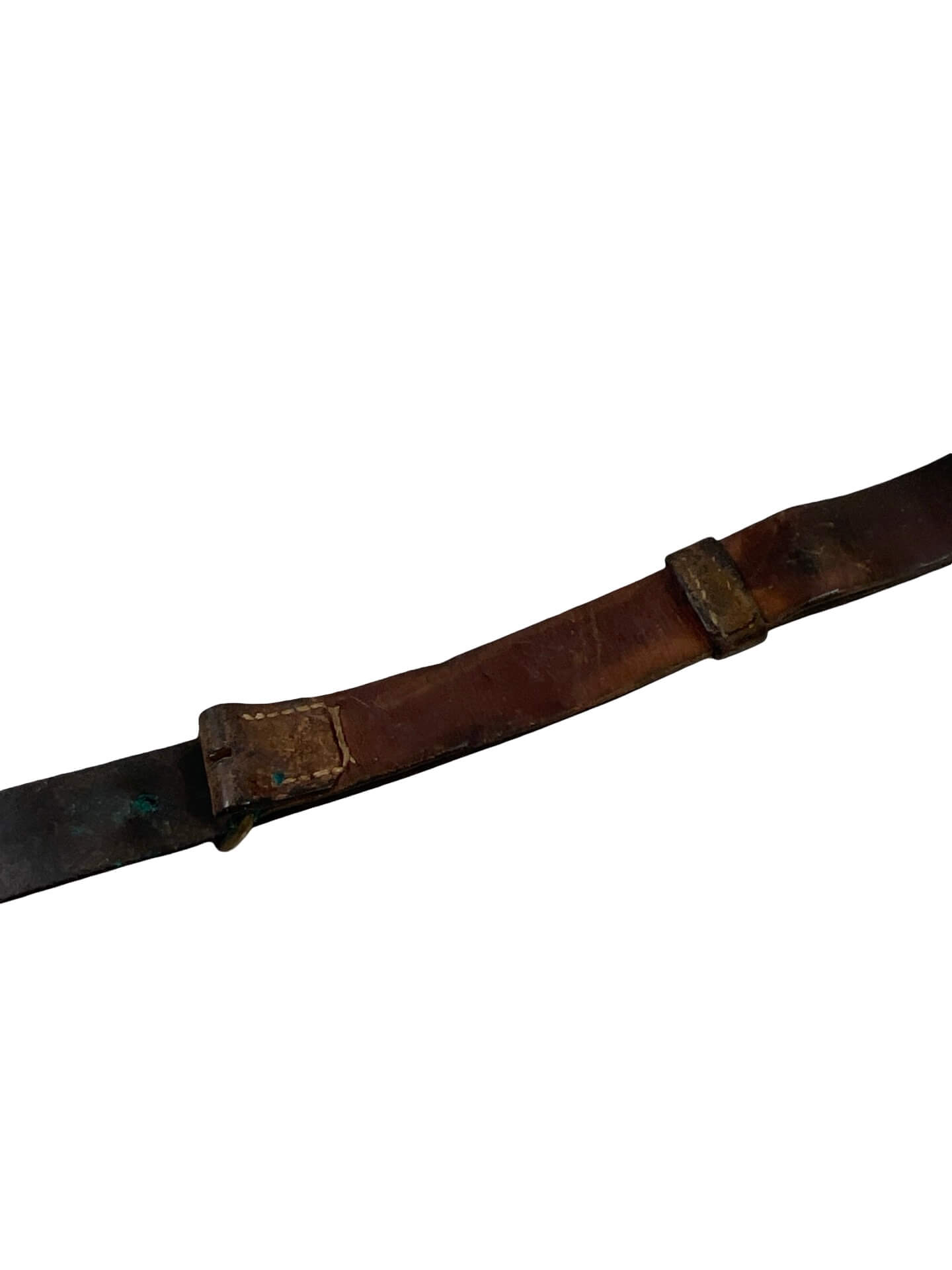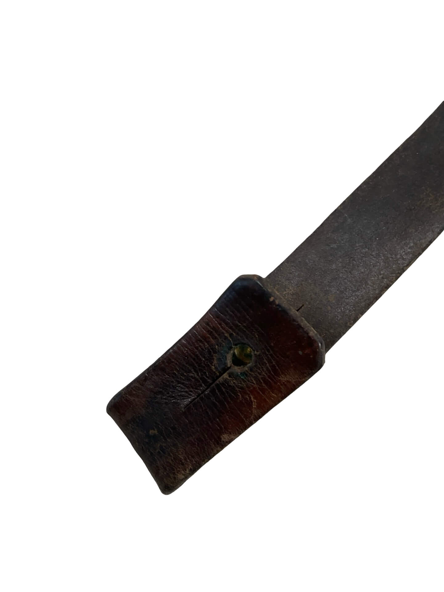 The Swedish M96 M38 Brown Leather Rifle Sling is a standard accessory originally issued for use with the Swedish Mauser Model 1896 (M96) and Model 1938 (M38) military rifles. Manufactured from durable brown leather, this sling features metal hardware, including an adjustment buckle and button-stud closure, enabling users to securely attach and adjust the sling to their preference. It measures approximately 47-48 inches in length and about 1 inch in width, dimensions that are consistent with Swedish military specifications. The brown leather construction provides both functional support and period-correct appearance for collectors and reenactors. This sling was widely used by Swedish armed forces throughout the 20th century for carrying and stabilizing the rifle during field operations. Original slings may display varying degrees of wear, surface markings, or manufacturing stamps identifying the depot or year of production. The item serves as an authentic accessory for Swedish Mauser rifles and similar period firearms.