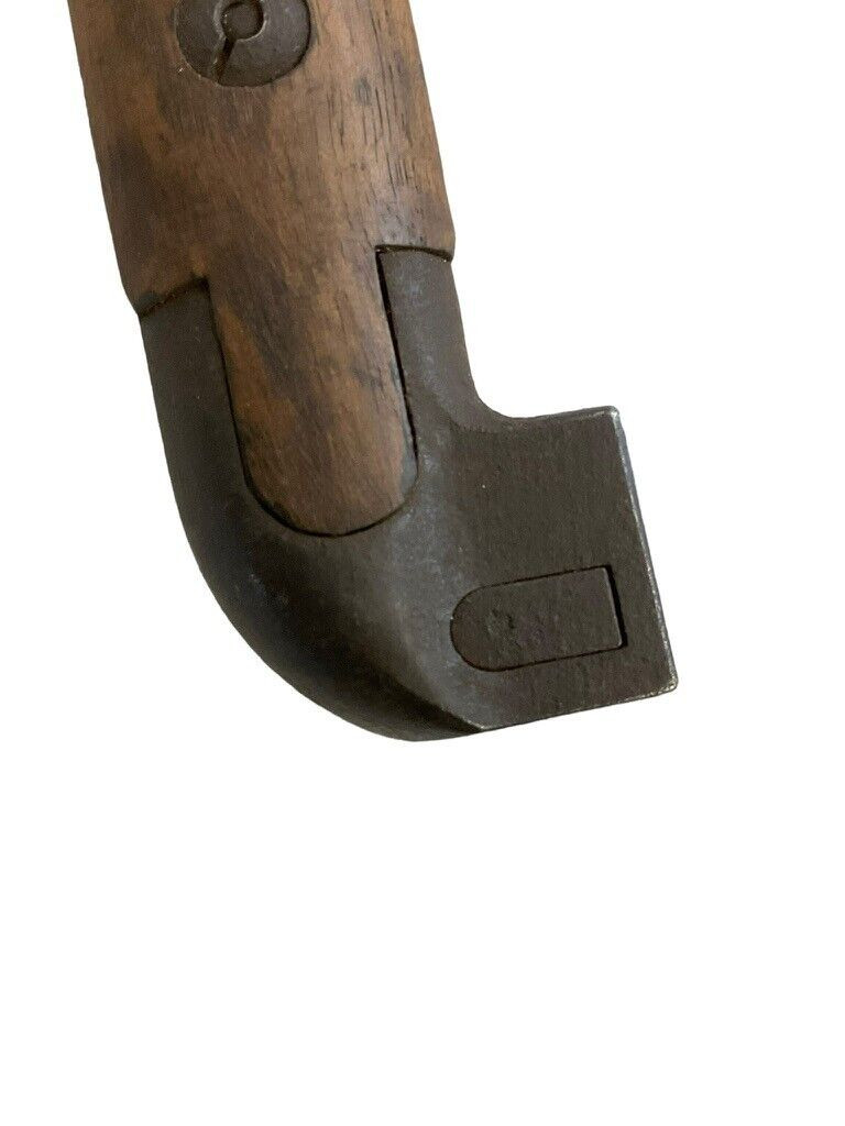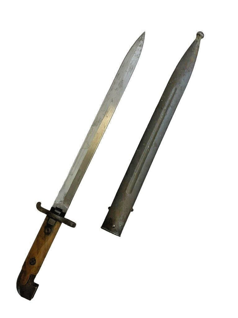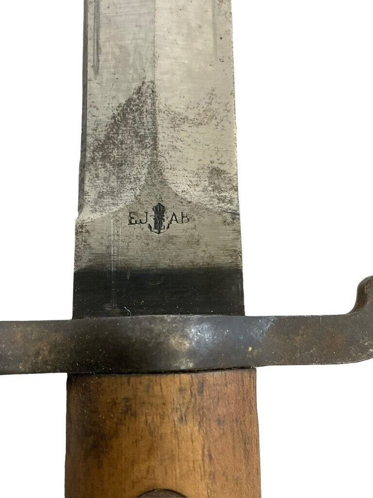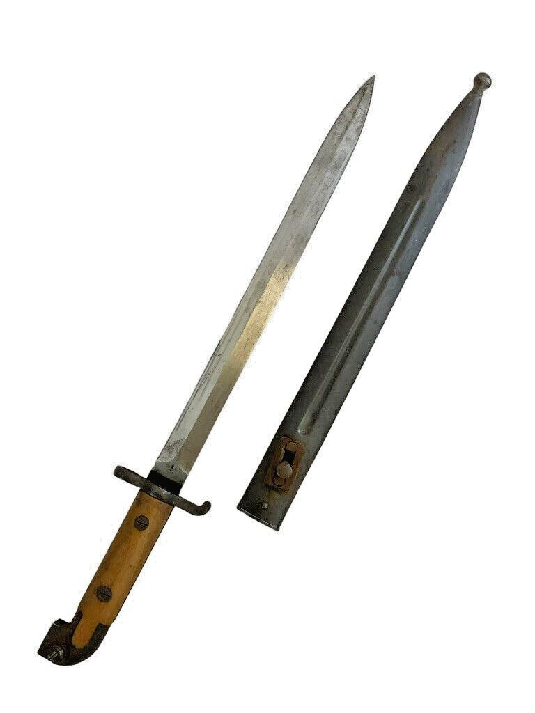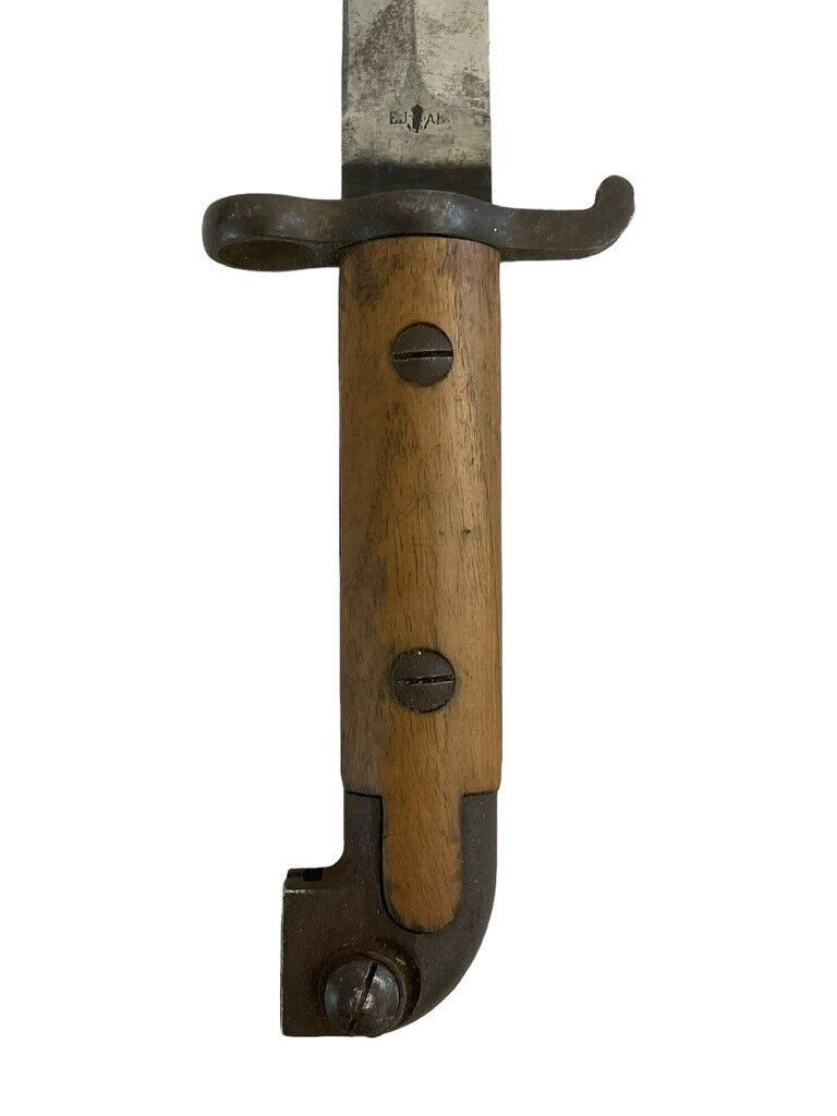 The Swedish Model 1914 Bayonet with Scabbard is a distinguished piece of military history, epitomizing the craftsmanship and precision engineering for which Sweden is renowned. This bayonet, originally designed for use with the Swedish Mauser rifles, features a single-edged blade made from high-quality steel, ensuring both durability and sharpness. The blade measures approximately 13 inches, making it an effective tool for both combat and utility purposes. The handle is crafted from robust materials, providing a secure and comfortable grip under various conditions. Accompanying the bayonet is a sturdy leather and metal scabbard that securely houses the blade when not in use, protecting it from wear and the elements. Collectors and military enthusiasts appreciate the Swedish Model 1914 Bayonet not only for its functional design but also for its historical significance, reflecting Sweden’s military heritage from the early 20th century.