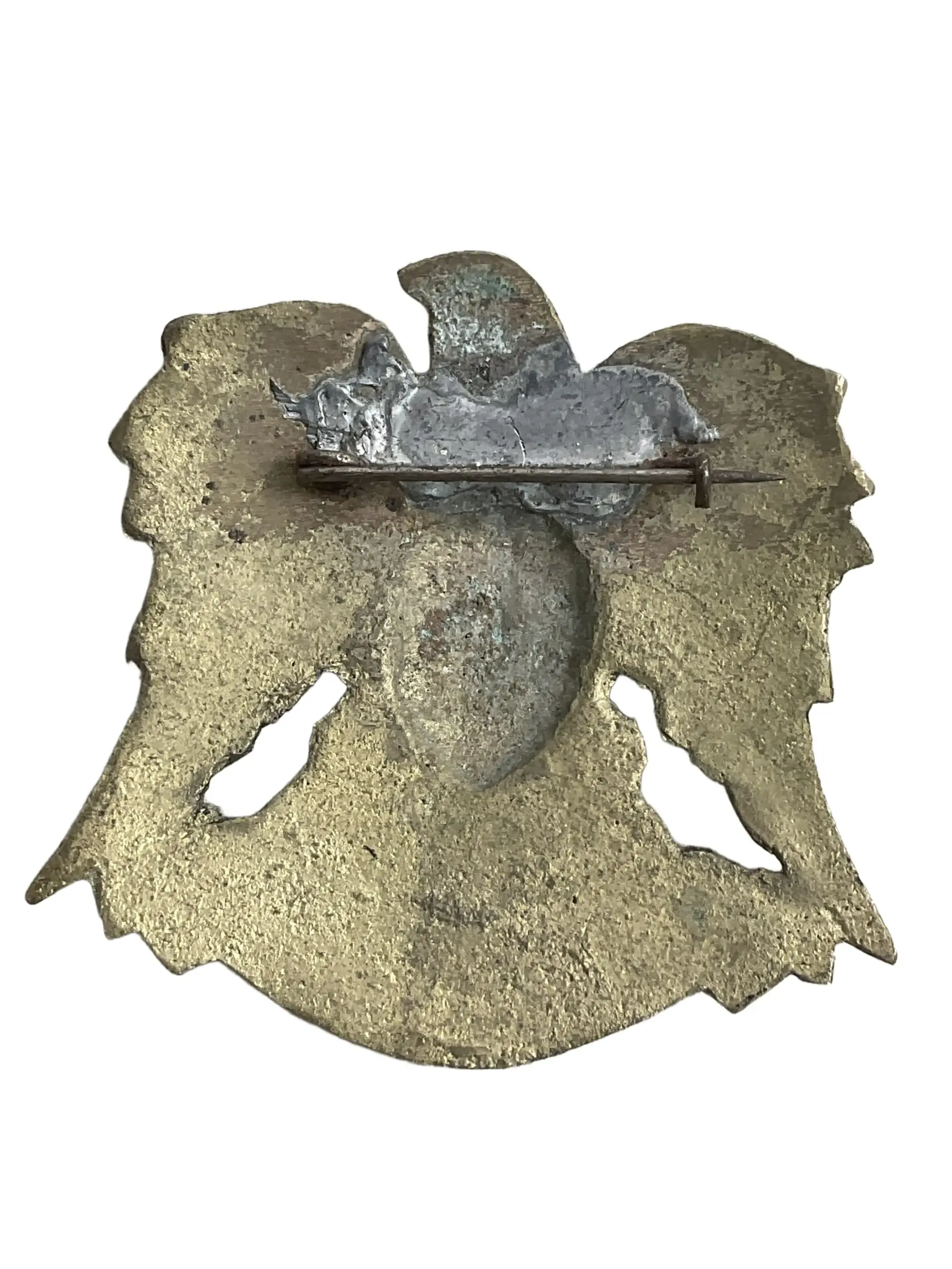 The Syrian Armed Forces Cap Badge is an insignia commonly worn by personnel within the Syrian military. This badge is typically crafted from metal and features national symbols such as the eagle of Saladin, which is associated with Syrian state heraldry. The design often incorporates elements rendered in relief, with colored enamel accents representing the Syrian flag. The badge is intended for placement on the front of service caps, signifying military affiliation and rank within the armed forces. Used across various branches, including the army, air force, and navy, its style and details may vary slightly depending on the era and the branch of service. The cap badge serves both as an identifier and as part of the formal uniform regulations employed by the Syrian military. Items of this type are often sought by collectors interested in Middle Eastern military history or insignia. This badge represents a typical example of military headgear insignia from Syria.
