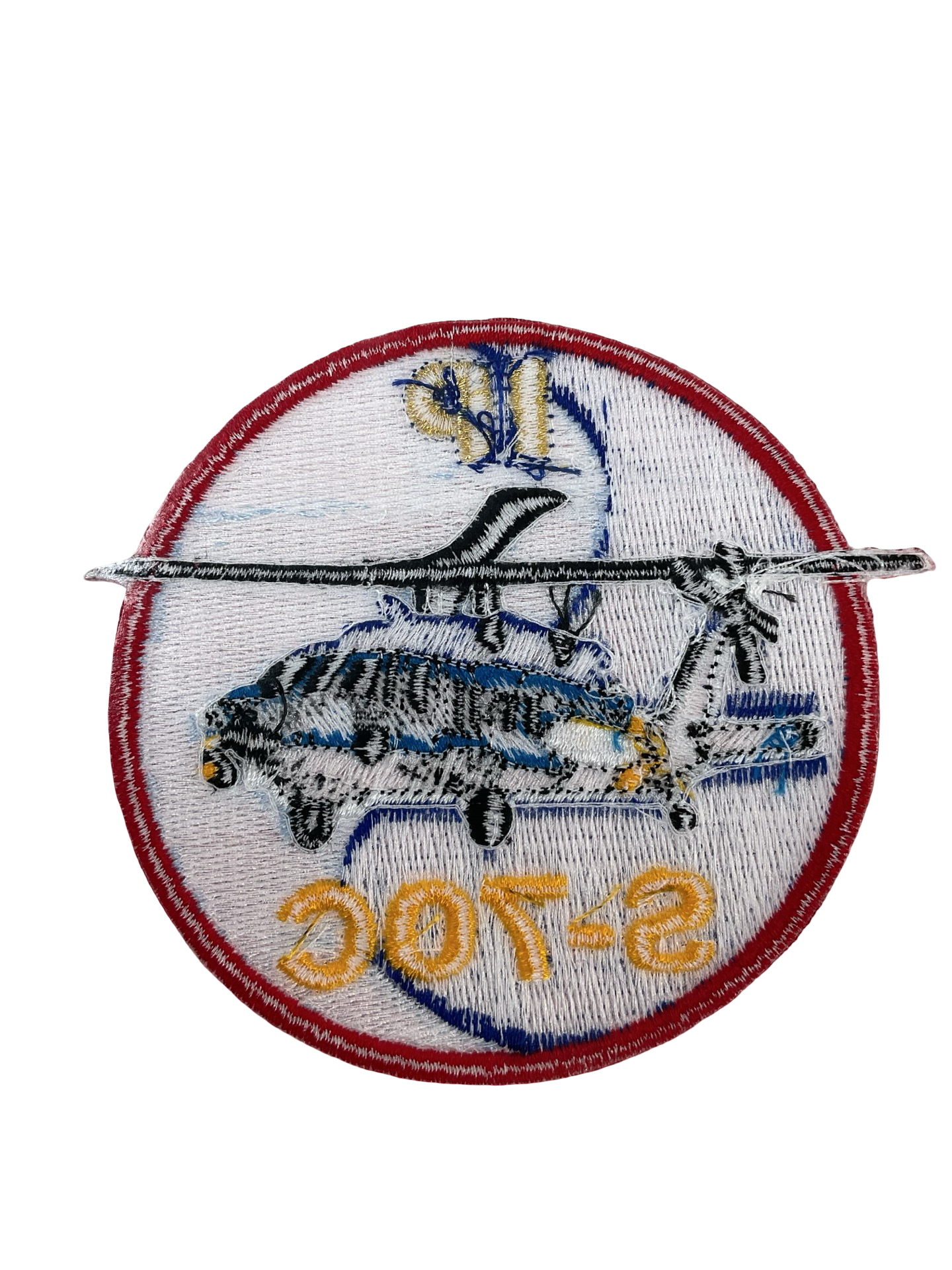 The Taiwanese Air Force S-70C Helicopter Instructor Pilot (IP) Patch is a military insignia awarded to instructor pilots certified on the S-70C helicopter, a variant of the Sikorsky UH-60 Black Hawk tailored for use by the Republic of China (Taiwan) Air Force. This embroidered patch features specific design elements denoting the instructor pilot qualification, typically incorporating the S-70C aircraft silhouette, pilot wings, and identifying text in either English or Chinese characters. The patch signifies advanced flight proficiency and instructional authority, distinguishing personnel who are responsible for the training of other aircrew members within the S-70C program. Such patches are usually worn on flight suits or jackets and serve both as identification and as a mark of achievement within the squadron hierarchy. This item reflects the specialized nature of helicopter training operations within the Taiwanese military aviation community. The patch is of interest to collectors of modern military insignia and aviation memorabilia.