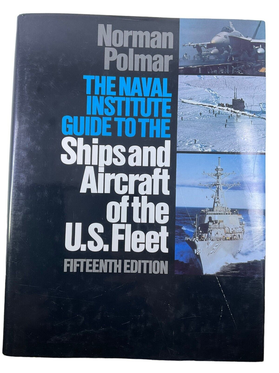 This is a used hardcover The Naval Institute Guide to the Ships and Aircraft of the US Fleet 15th Edition Norman Polmar Reference Book.  Total of 639 pages with lots of pictures and information.