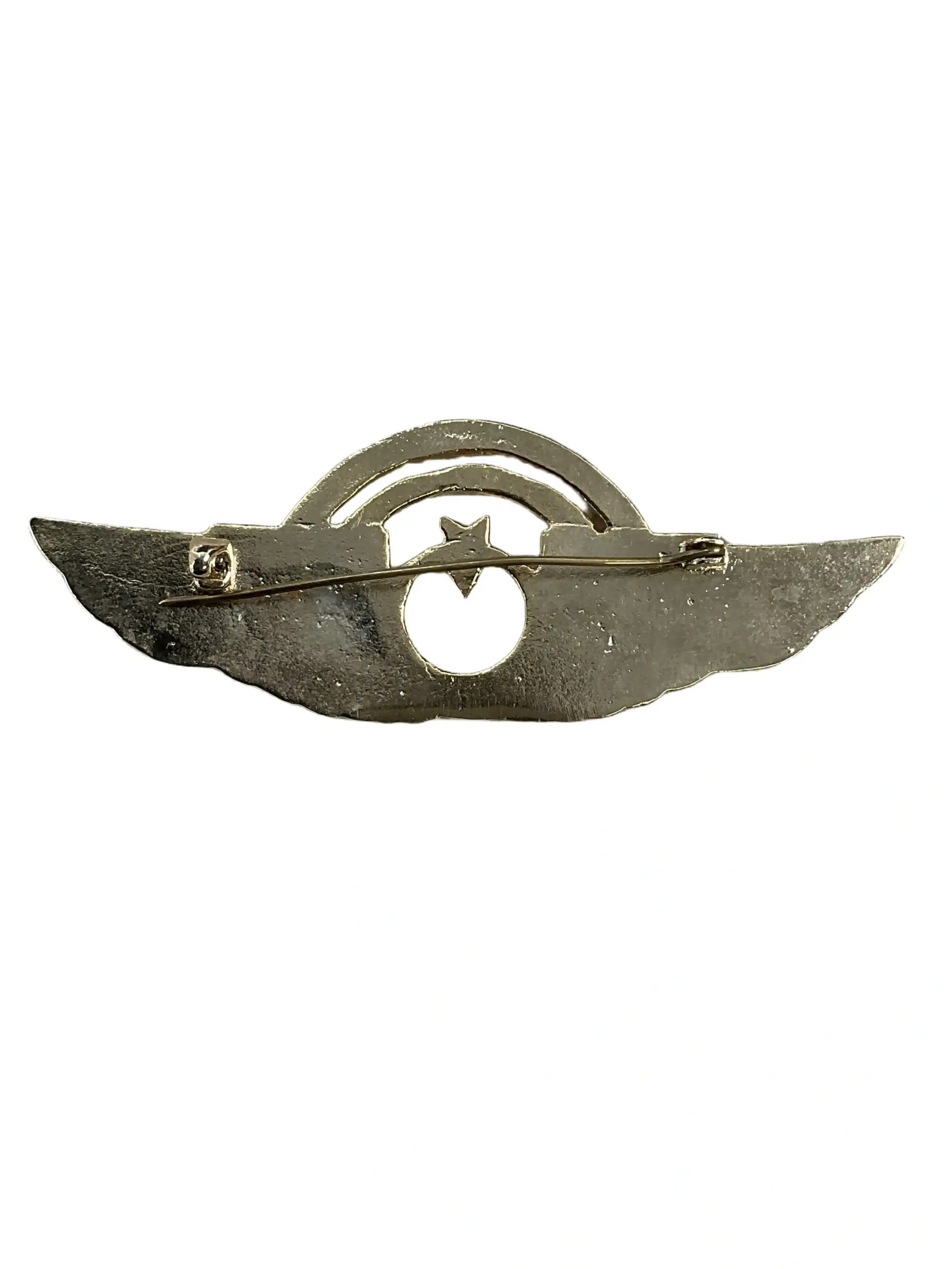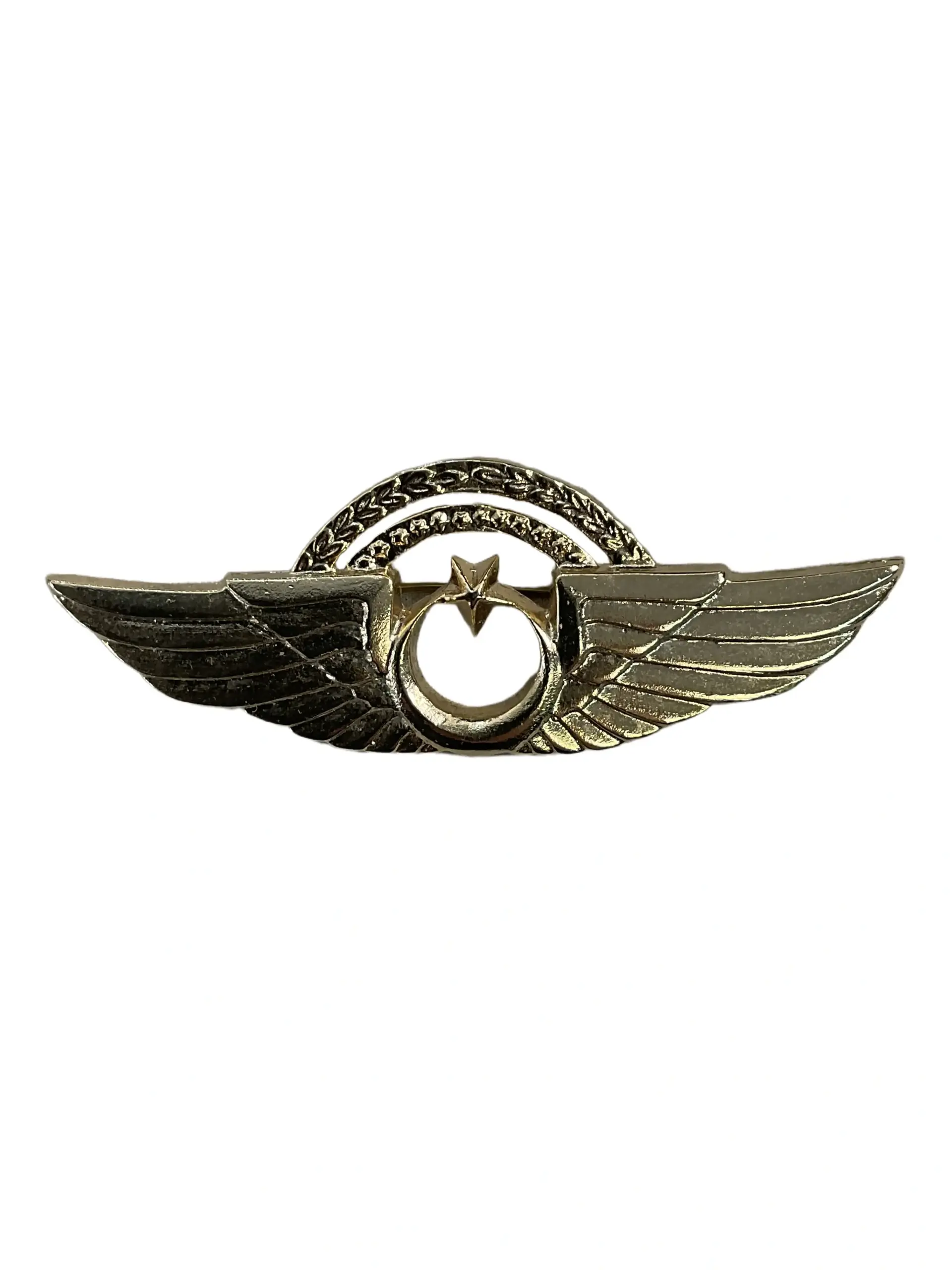 The Turkish Air Force Pilot’s Badge is an insignia awarded to qualified pilots of the Turkish Air Force. This badge typically consists of a stylized set of wings, often accompanied by a central emblem such as a star, crescent, or shield that incorporates elements of the national insignia of Turkey. The badge is worn on the uniform above the left breast pocket, signifying completion of requisite flight training and certification as a pilot in the Turkish military aviation branch. The design and materials may vary slightly depending on the era of issue, ranging from metal to embroidered variants for different uniforms and occasions. The badge not only serves as a mark of professional achievement but also reflects the traditions and symbolism of the Turkish armed forces. Items such as this are often of interest to collectors and historians studying military insignia and the development of air force branches worldwide.